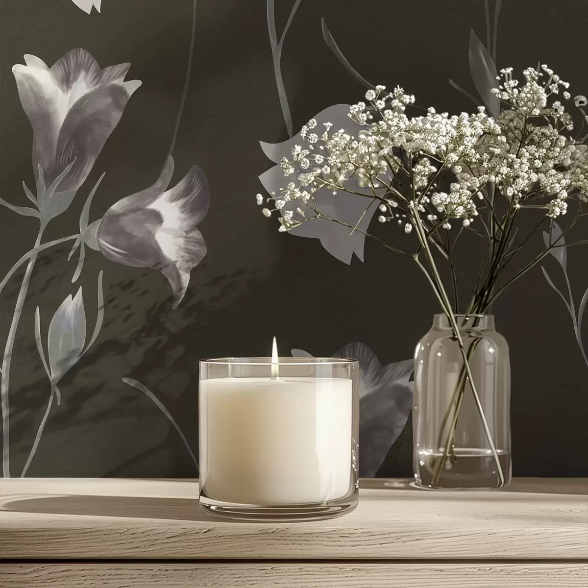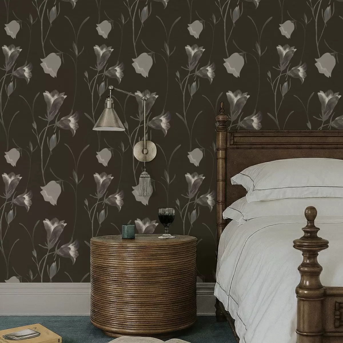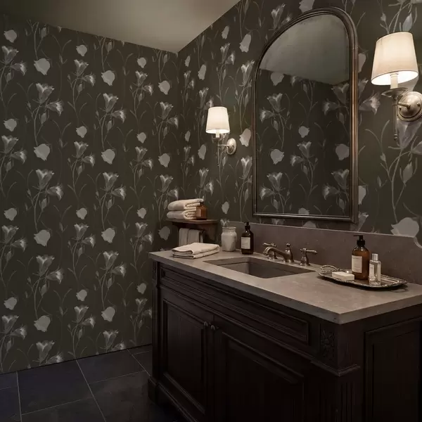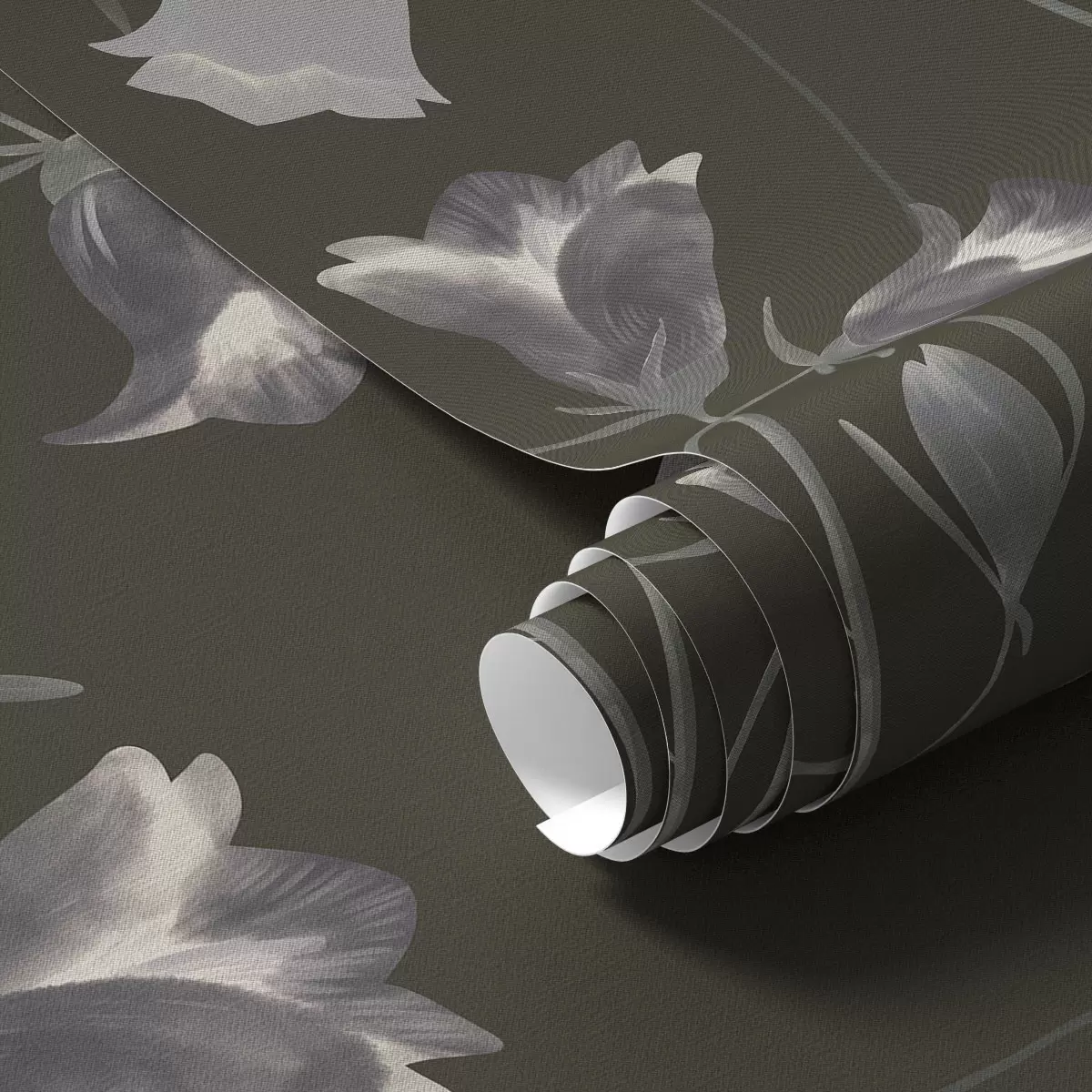Papiers peints Fleurs grises en forme de clochettes sur fond sombre Nr. a01119v1