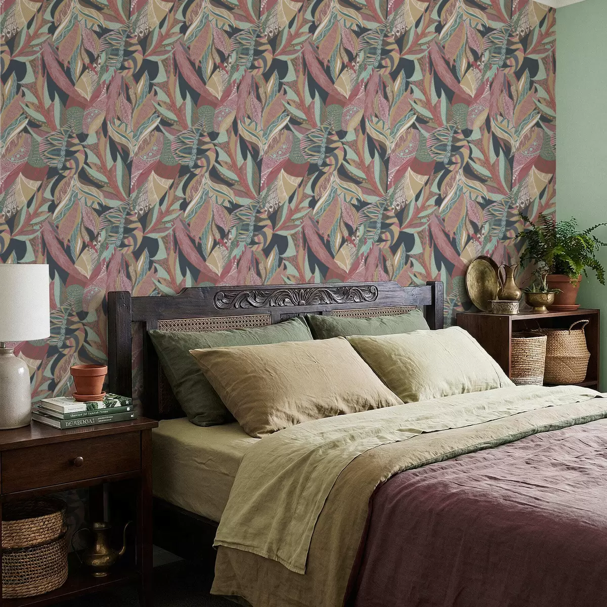 Papiers peints Feuilles aux motifs colorés sur fond sombre Nr. a01120