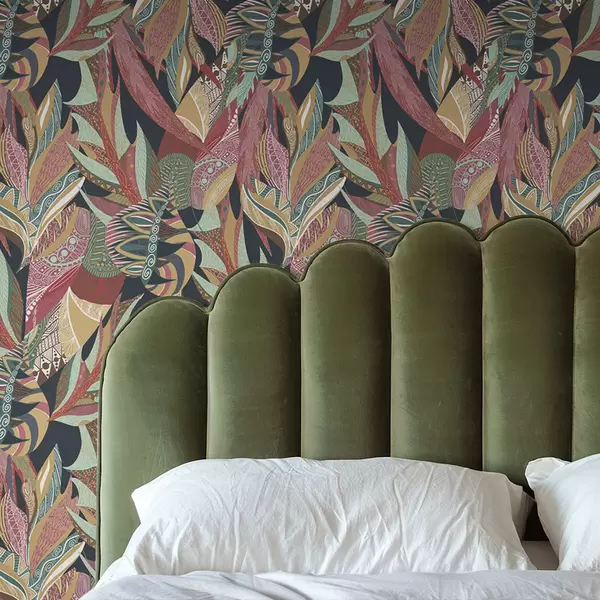 Papiers peints Feuilles aux motifs colorés sur fond sombre Nr. a01120
