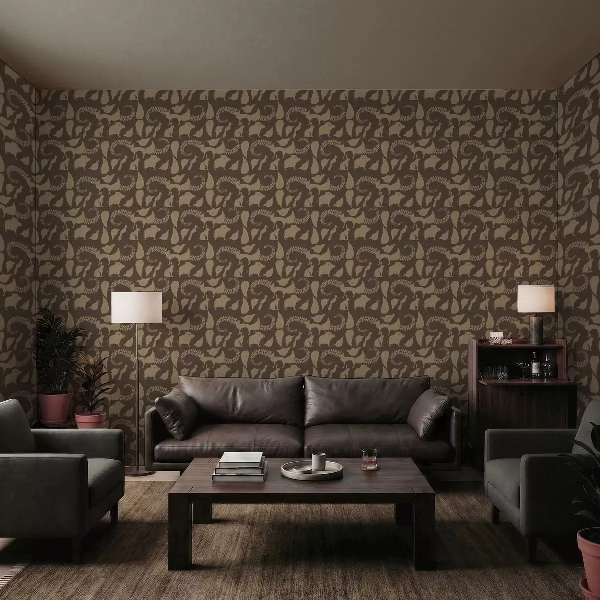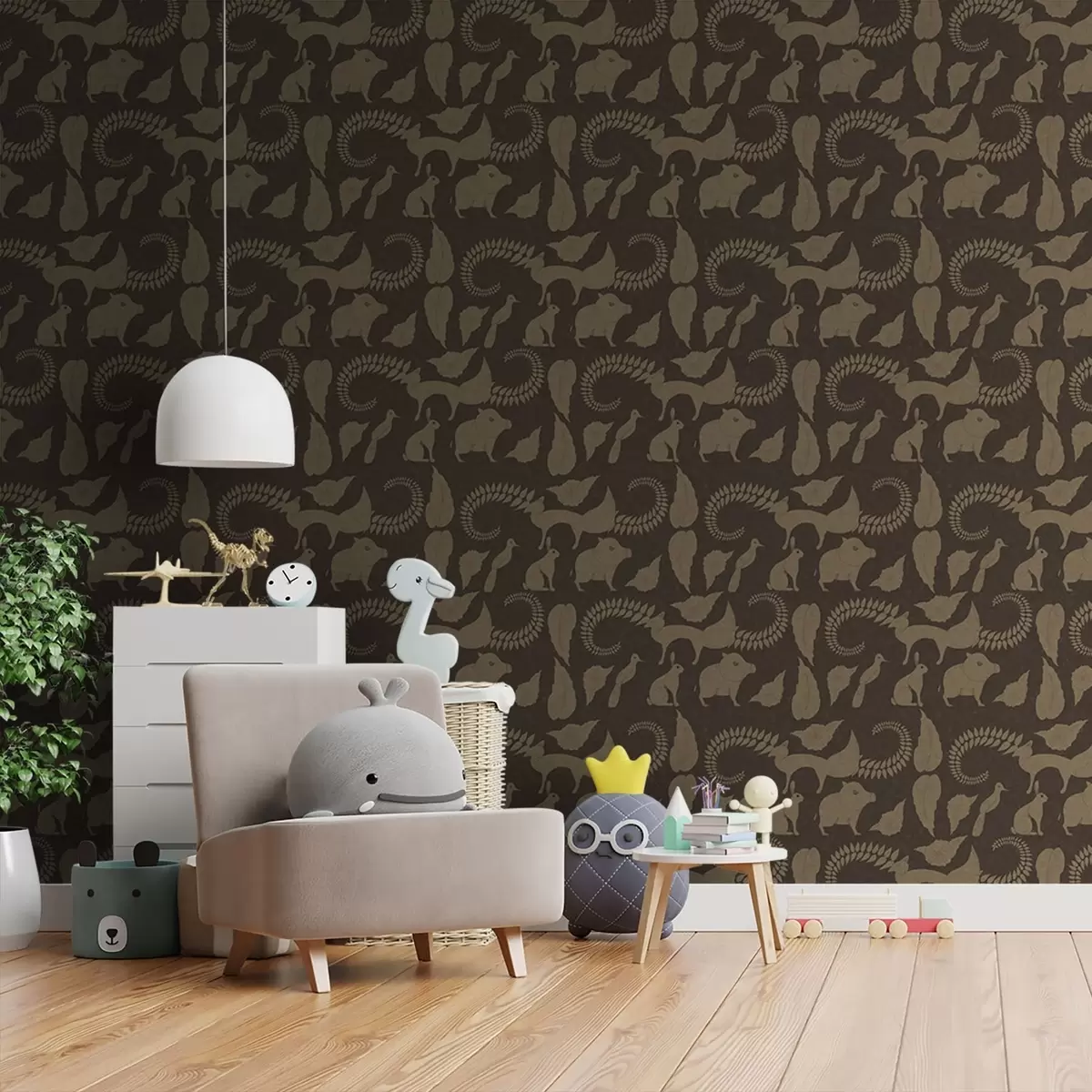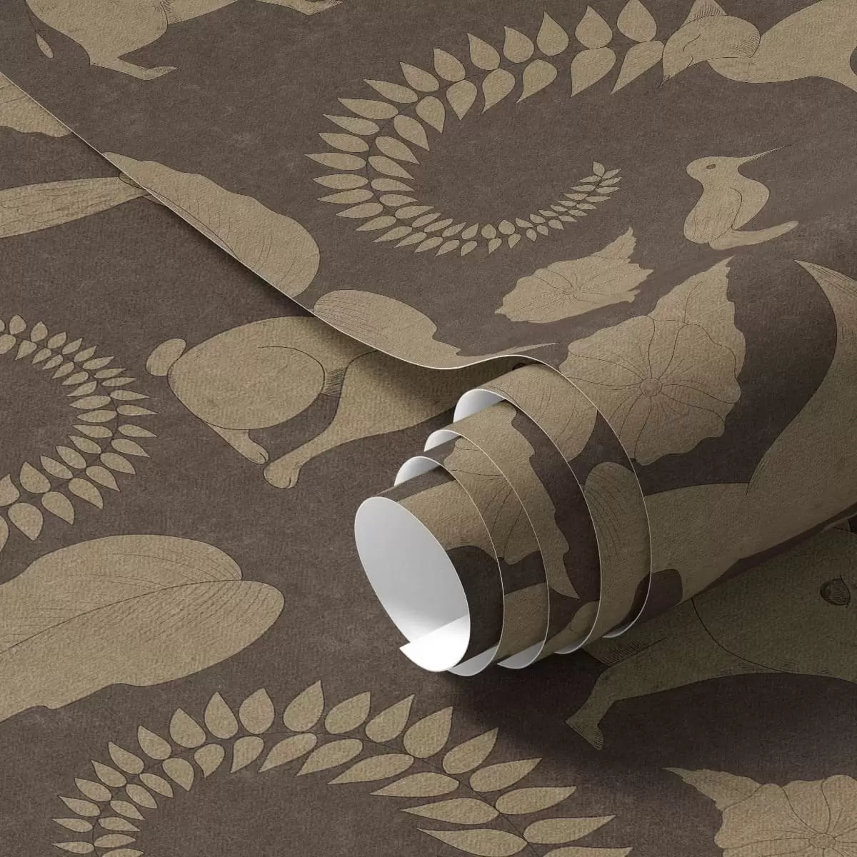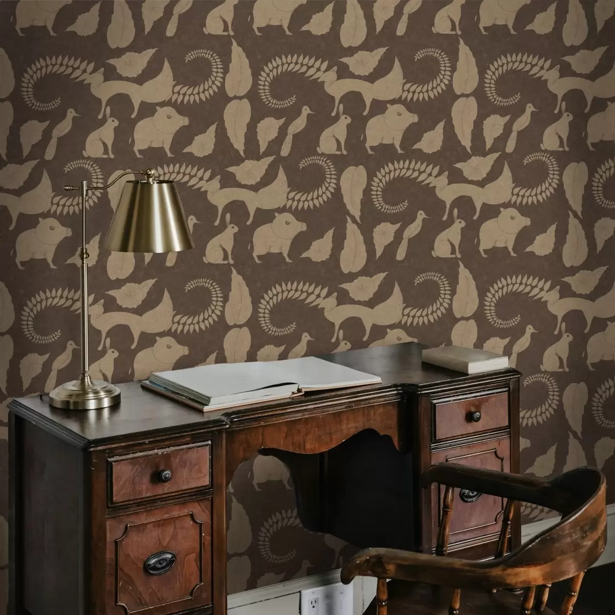 Papiers peints Motif forestier avec des animaux sur fond marron Nr. a01121