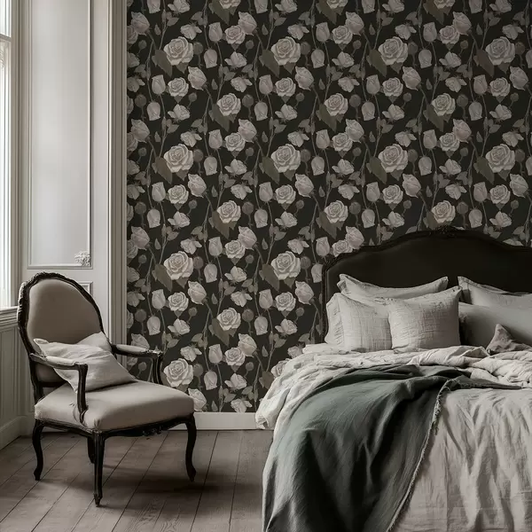 Papiers peints Motif floral avec des roses sur fond sombre Nr. a01123