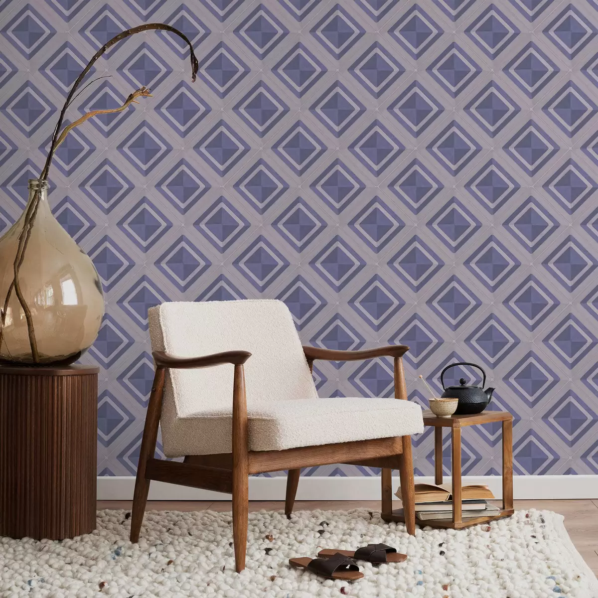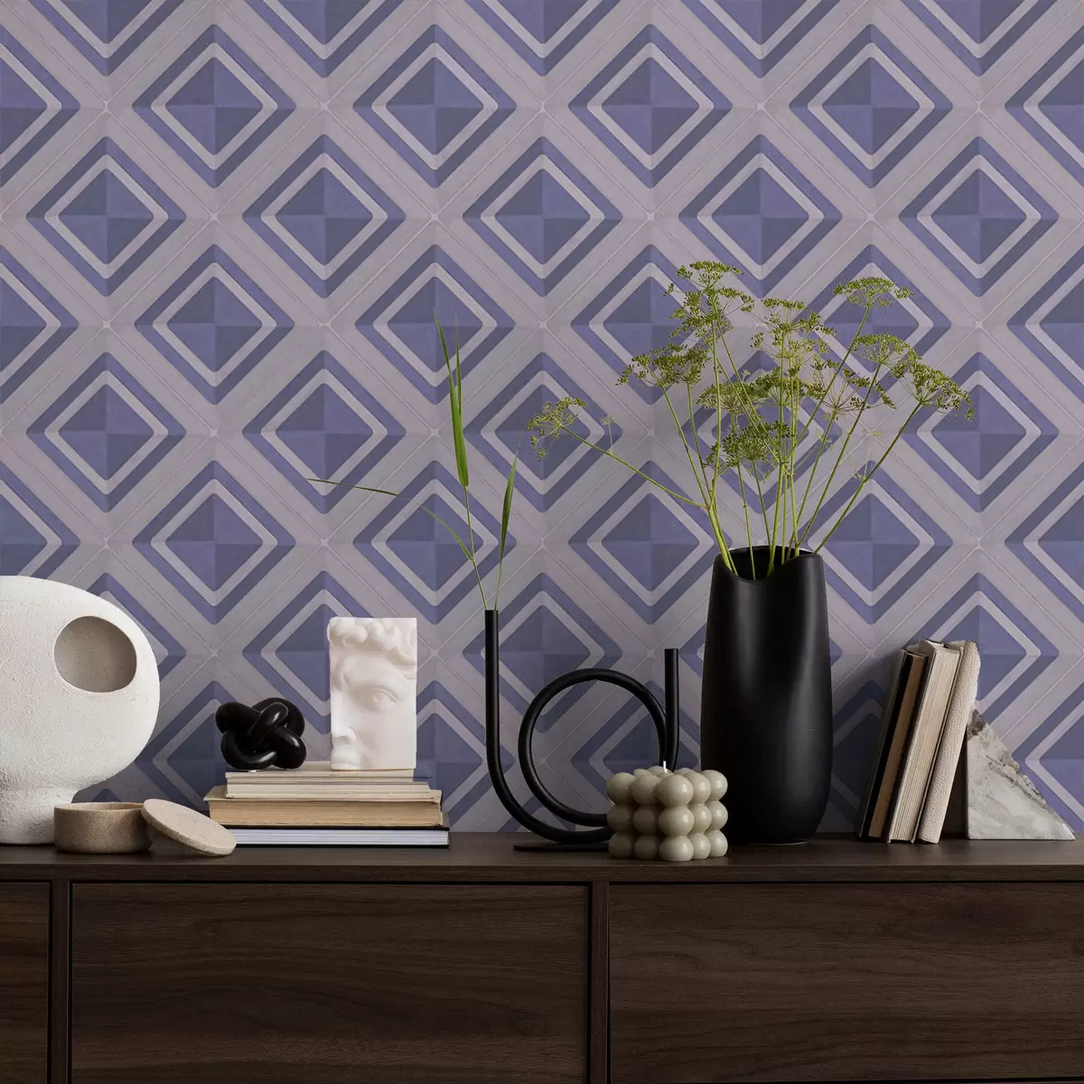 Papiers peints Motif géométrique en losanges dans les tons bleus Nr. a01128v1