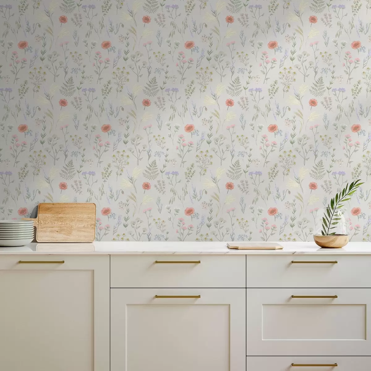 Papiers peints Motif délicat de fleurs sauvages sur fond clair Nr. a01152
