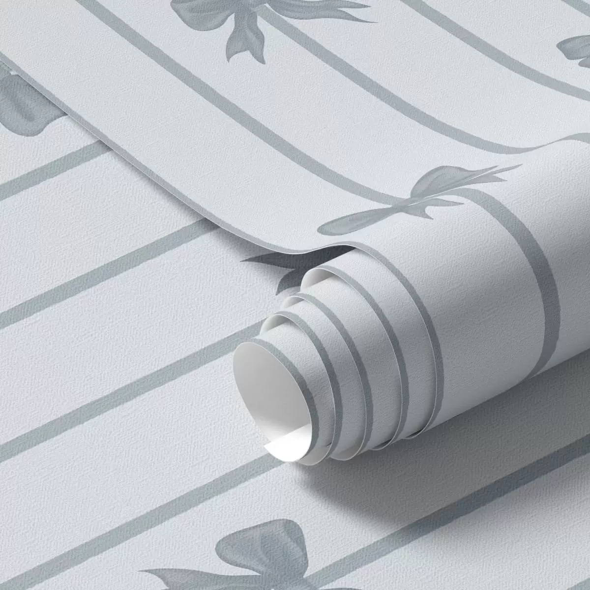 Papiers peints Des nœuds bleus sur un fond clair rayé Nr. a01162v2