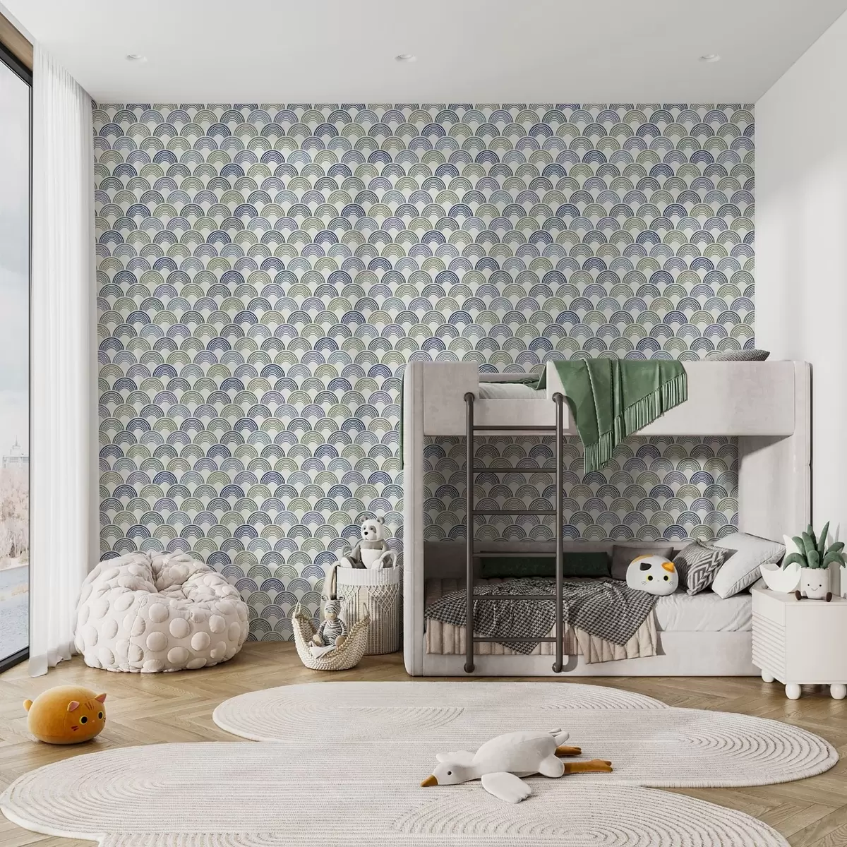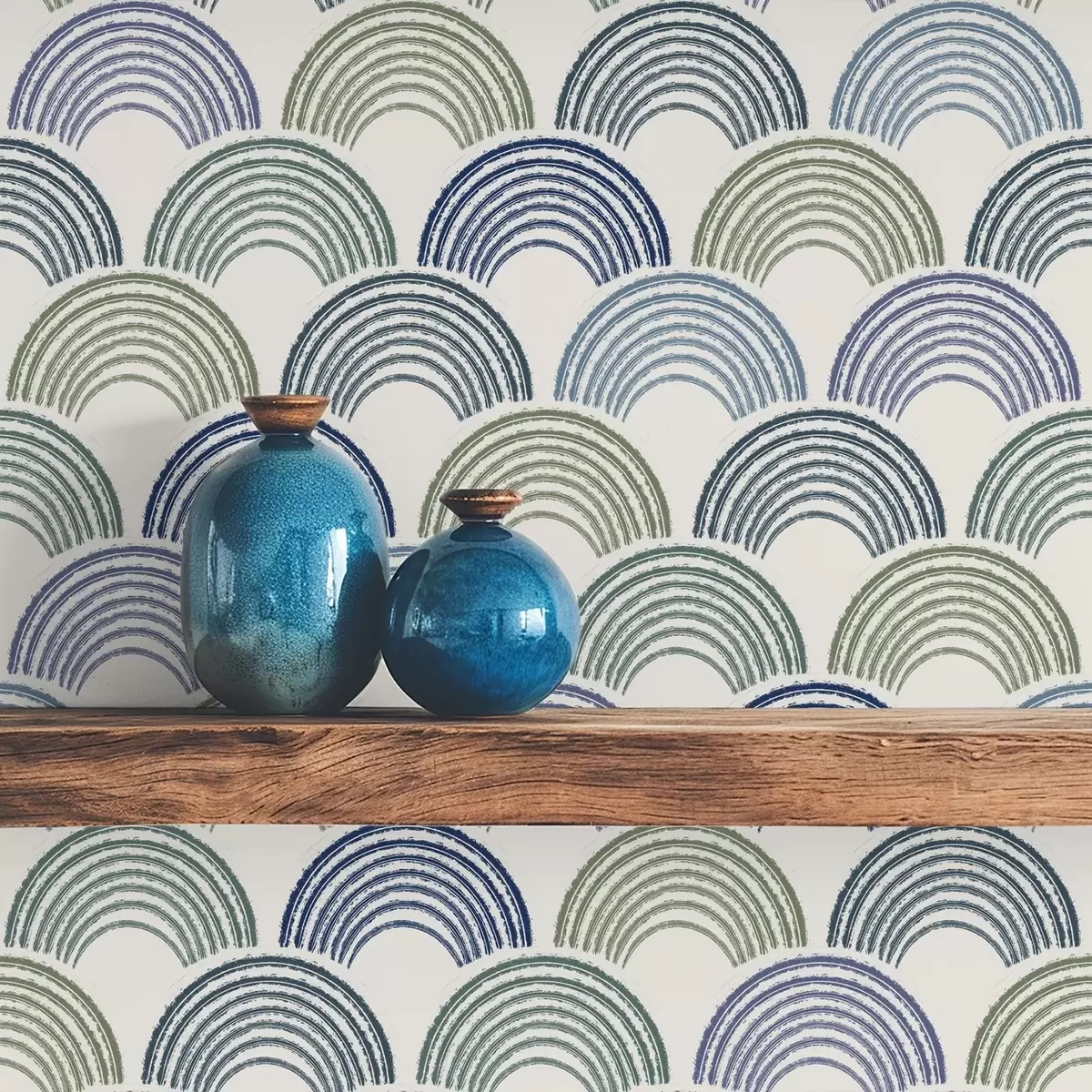 Papiers peints Des arcs bleus et verts disposés en motif répétitif Nr. a01164v2