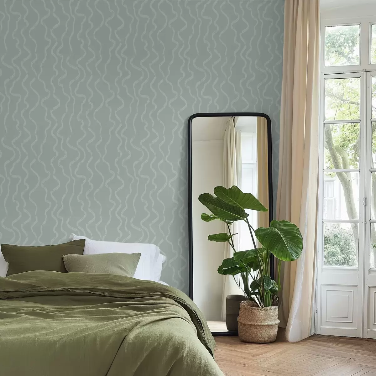 Papiers peints Motif ondulé sur fond vert Nr. a01167v2