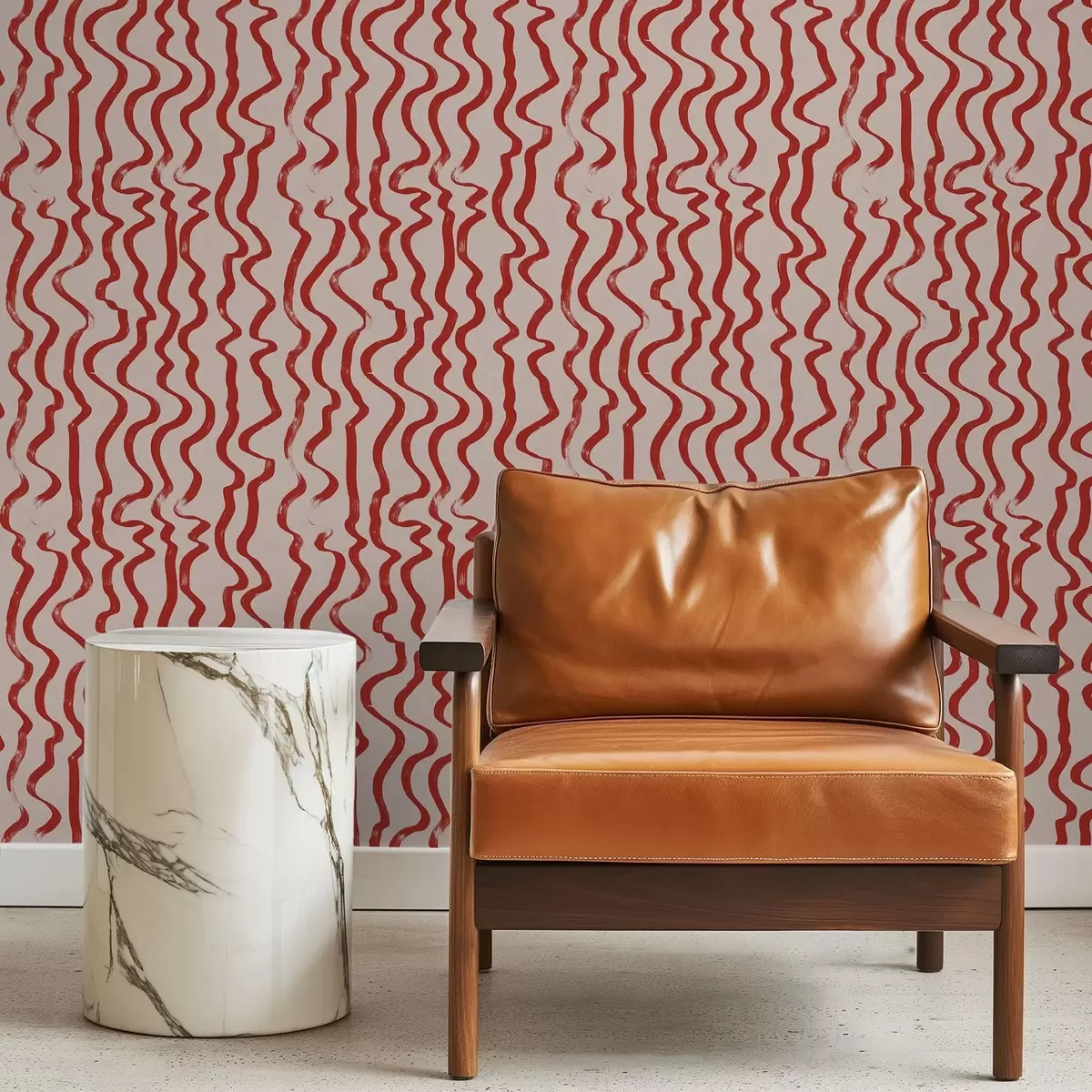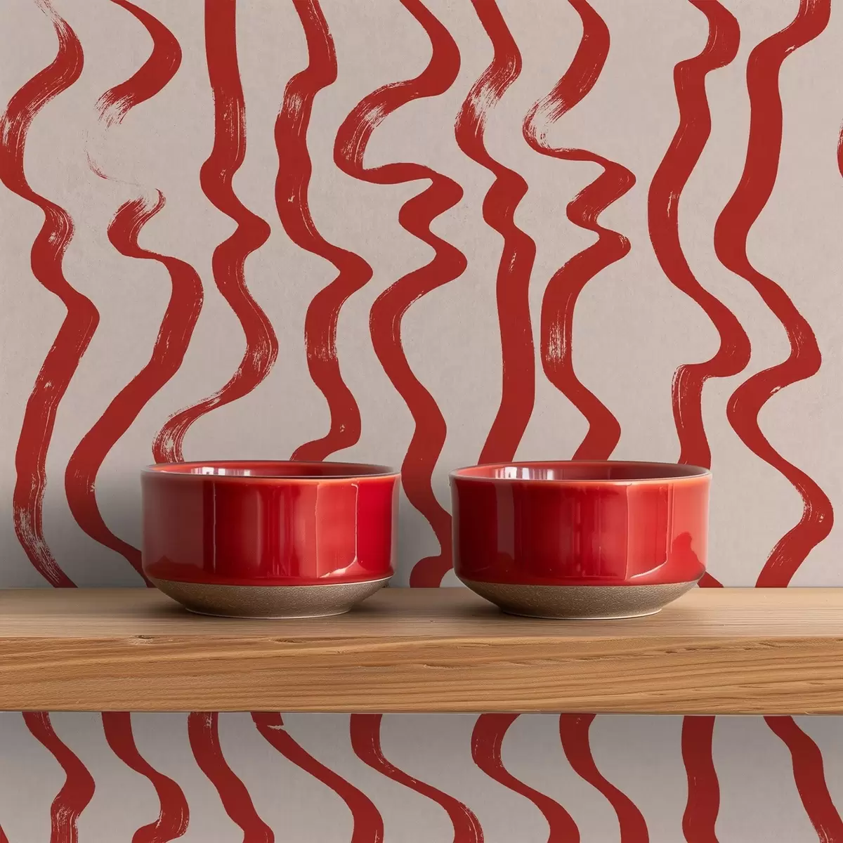 Papiers peints Des lignes ondulées rouges sur fond clair Nr. a01168