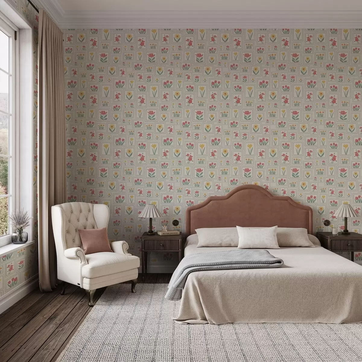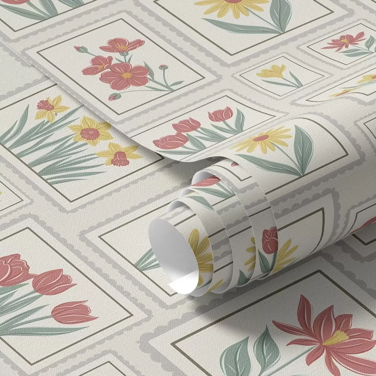 Papiers peints Illustrations florales encadrées sur fond clair Nr. a01173v1