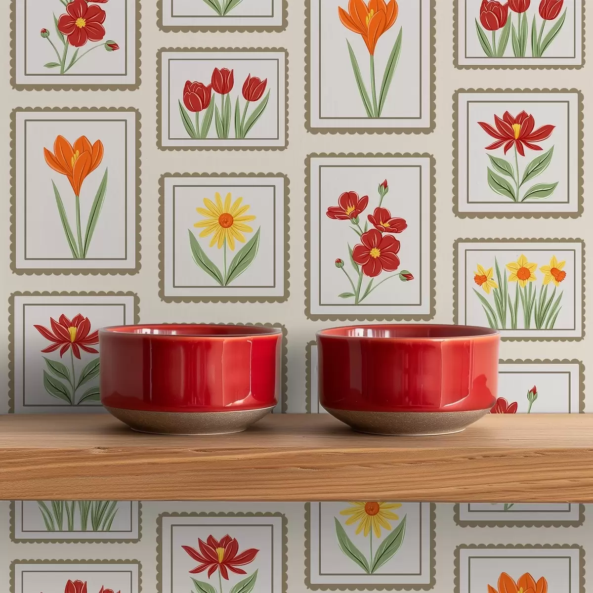 Papiers peints Illustrations florales aux couleurs vives et encadrées Nr. a01174v1
