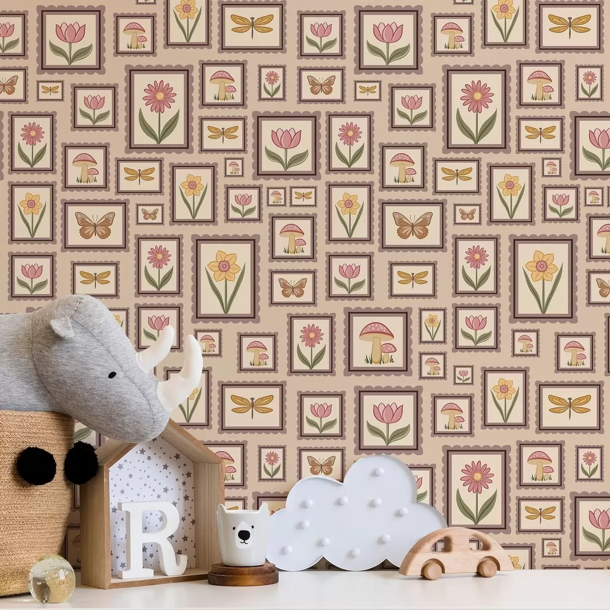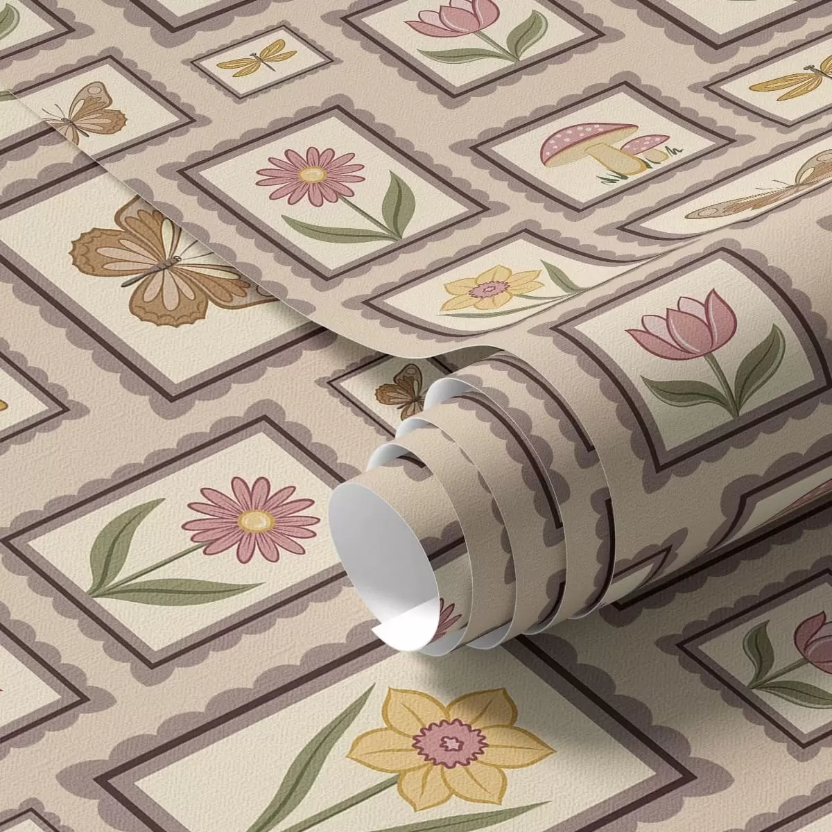 Papiers peints Illustrations encadrées dans des tons beiges chauds Nr. a01176v2