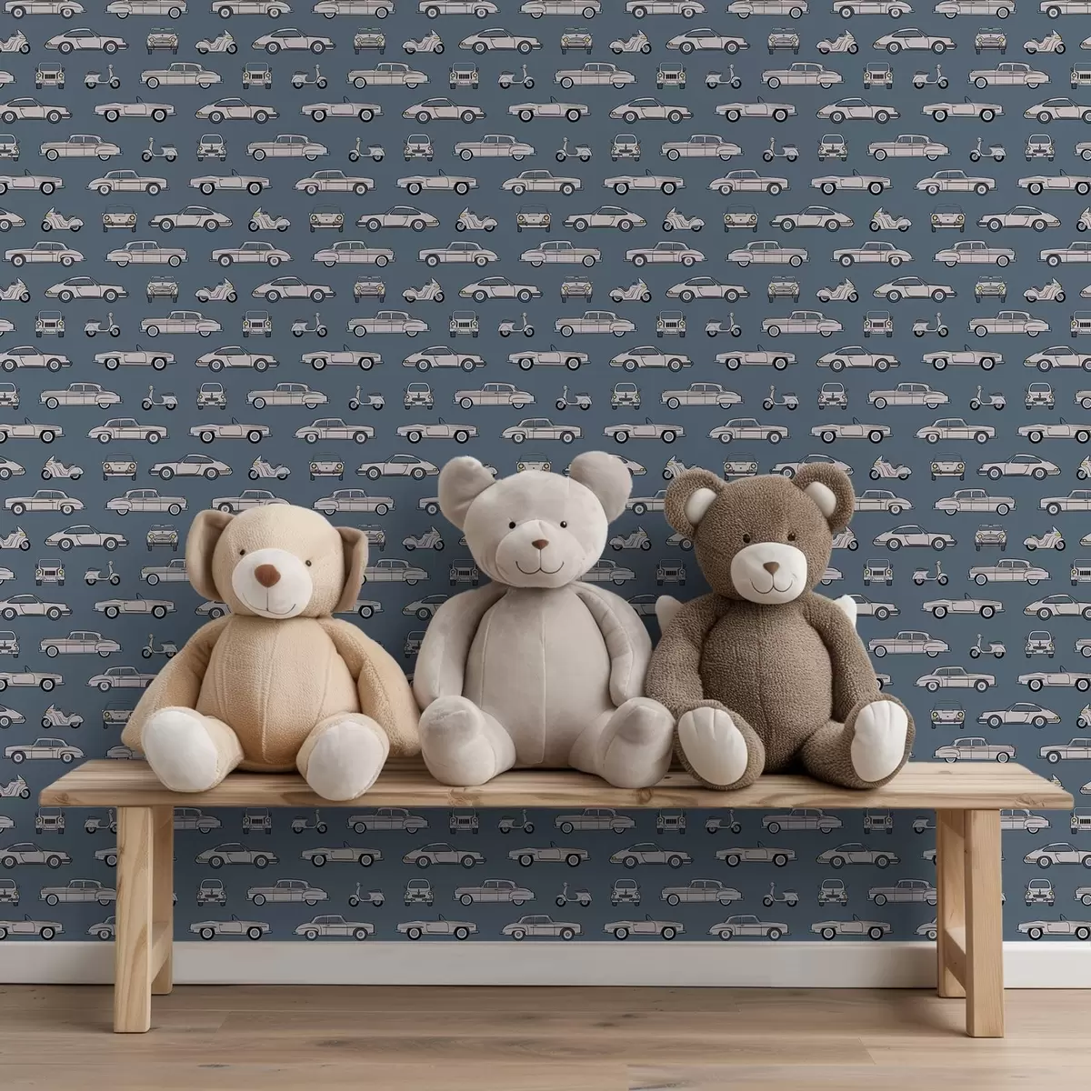 Papiers peints Voitures et scooters rétro sur fond bleu Nr. a01178
