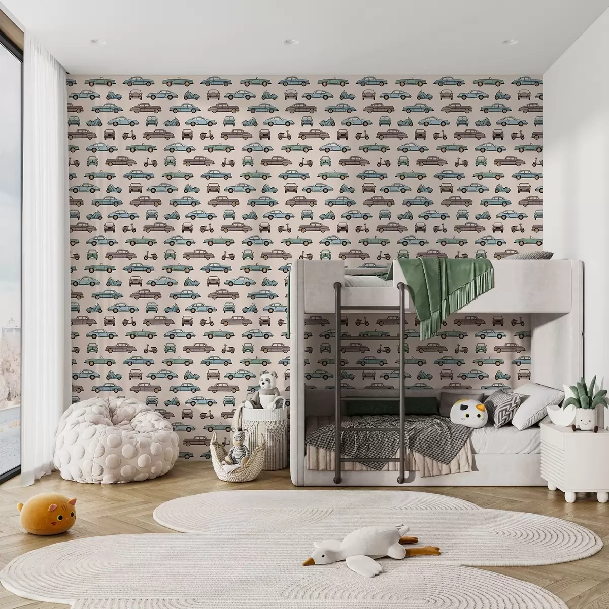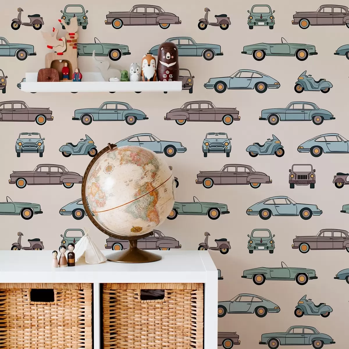 Papiers peints Voitures et scooters rétro sur fond beige Nr. a01178v1