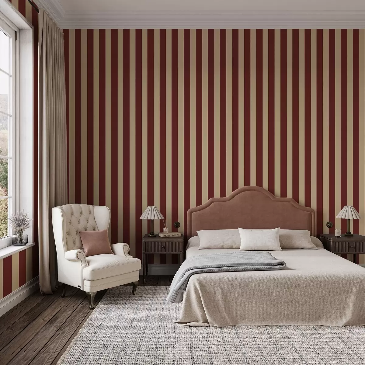 Papiers peints Rayures verticales rouges et beiges Nr. a01179
