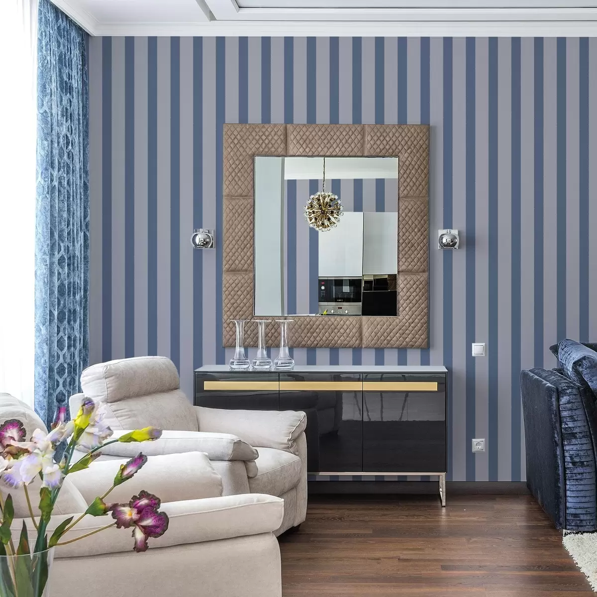 Papiers peints Rayures verticales bleues et grises Nr. a01180v1
