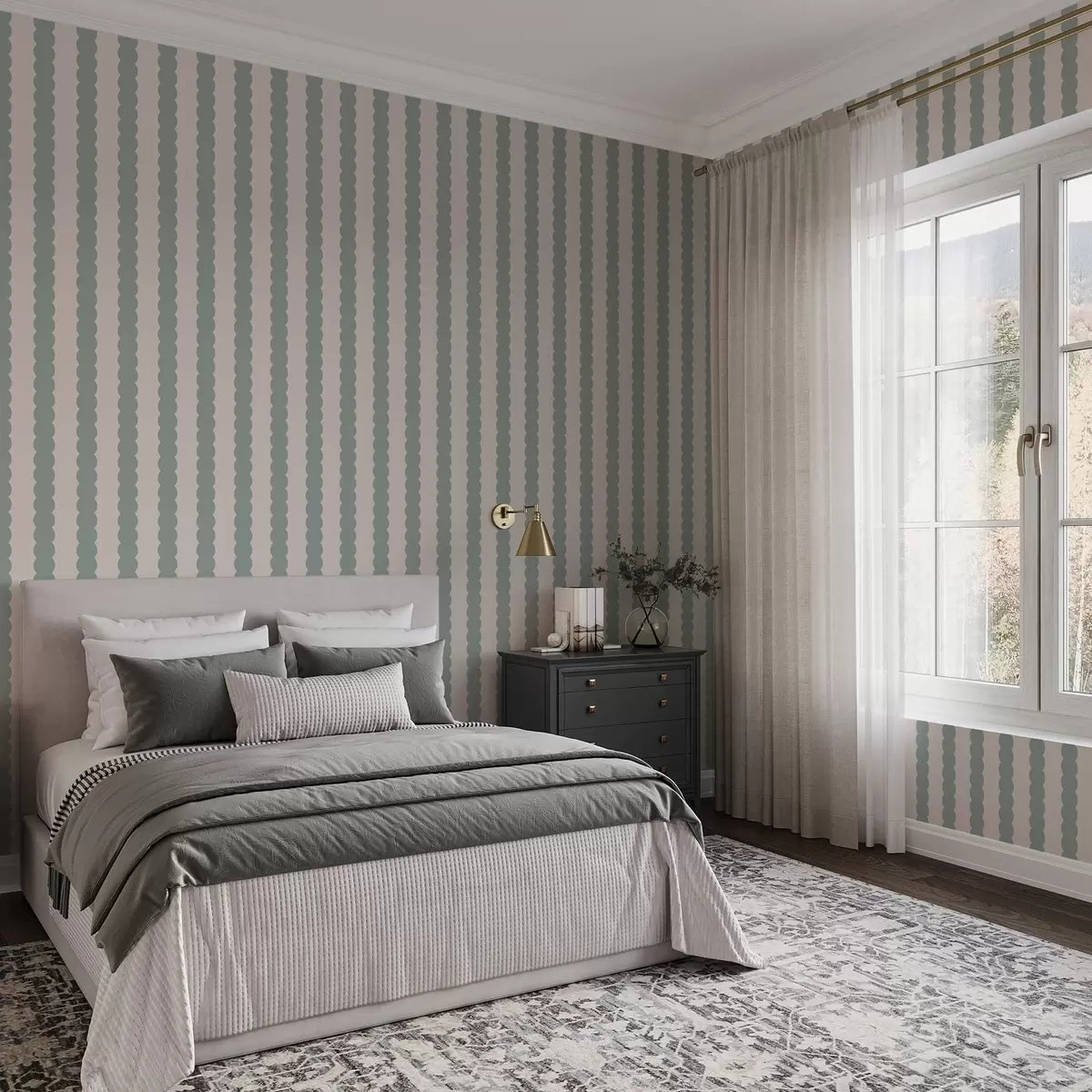 Papiers peints Rayures ondulées couleur olive, style minimaliste Nr. a01182v1