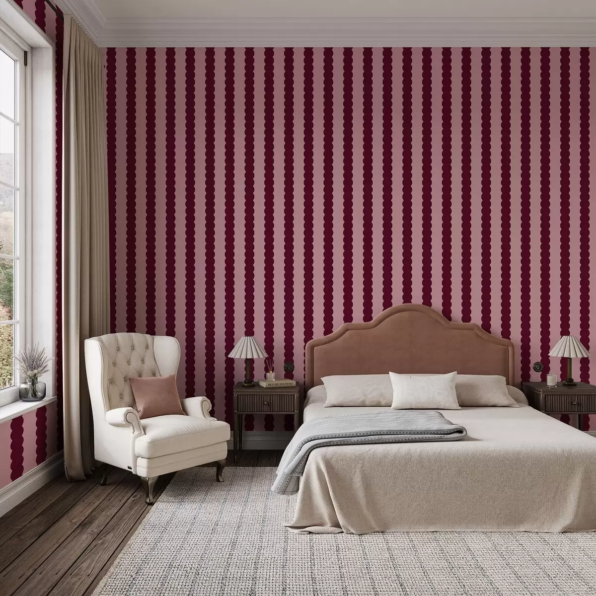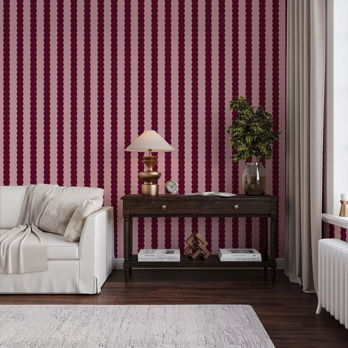 Papiers peints Rayures ondulées bordeaux dans un style minimaliste Nr. a01182v5