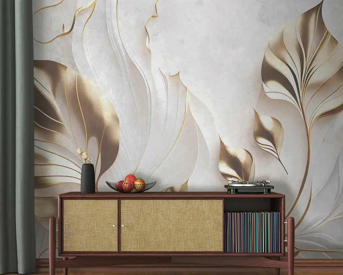 Papier peint Feuilles délicates sur un mur de béton N° u94010
