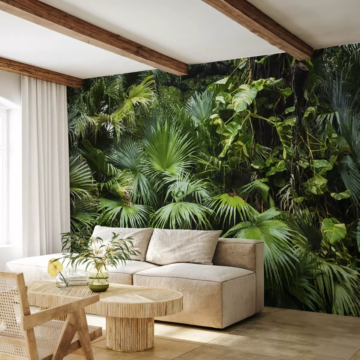 Papier peint Feuilles mouillées dans la jungle N° u93616