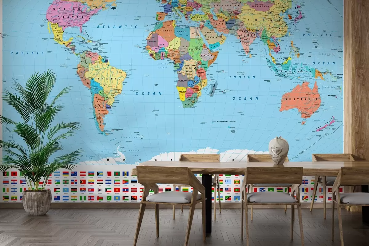 Papier peint Carte du monde avec des drapeaux de pays N° u60137