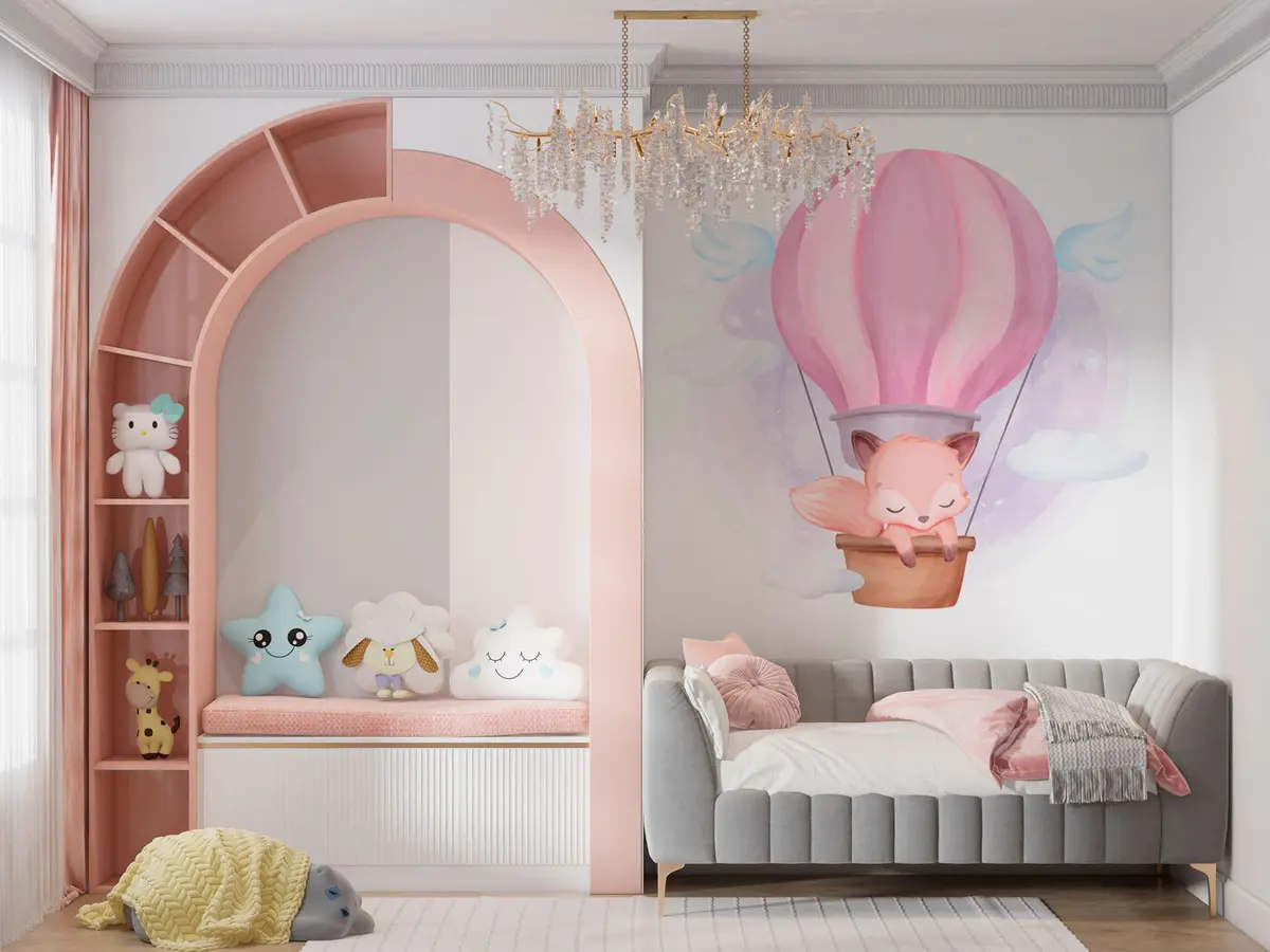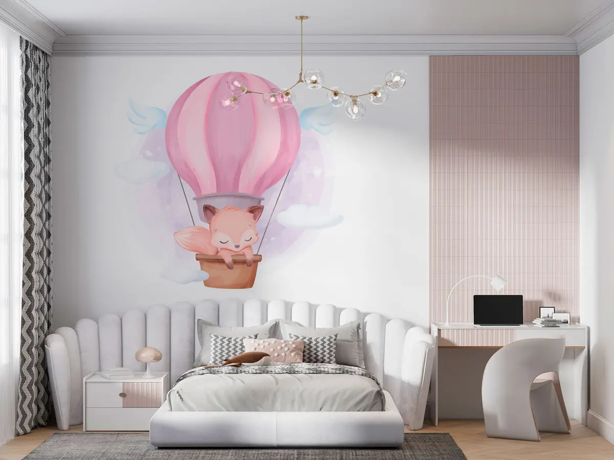 Papier peint Illustration d'un renard dans une montgolfière N° u97395