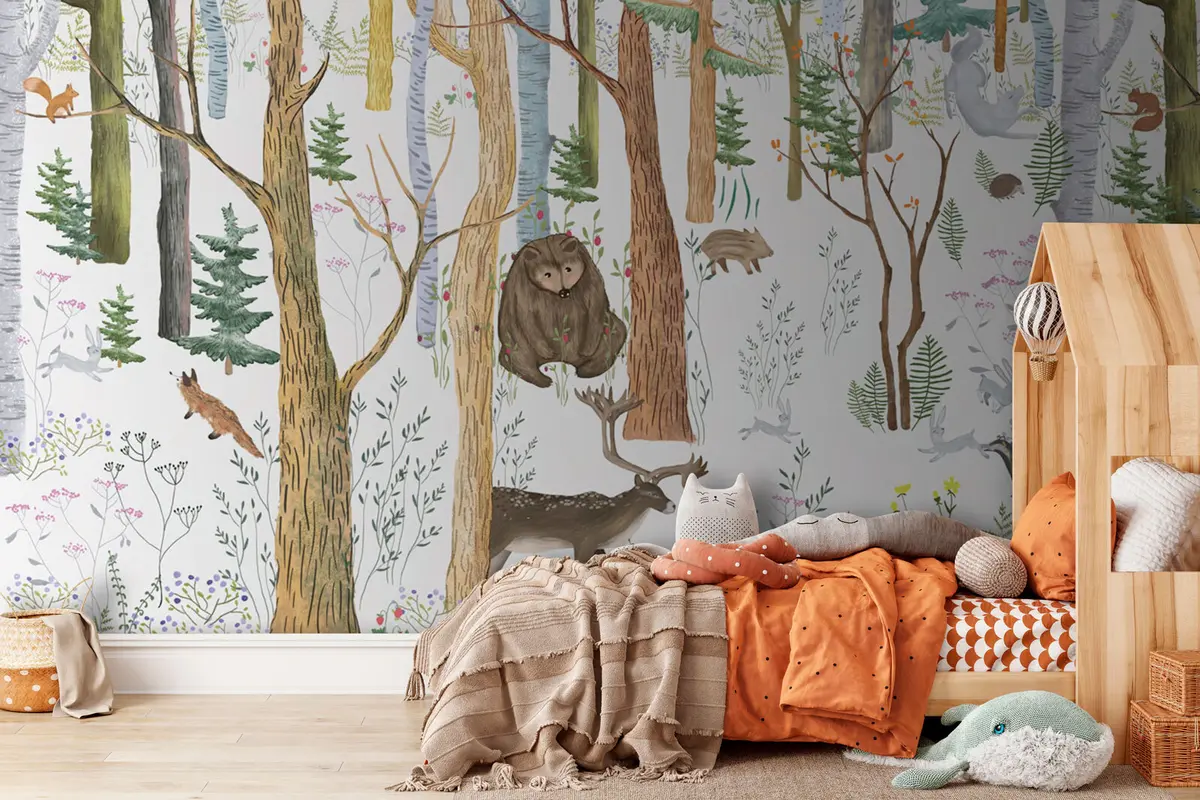 Papier peint Forêt de conte de fées avec des animaux N° u95021