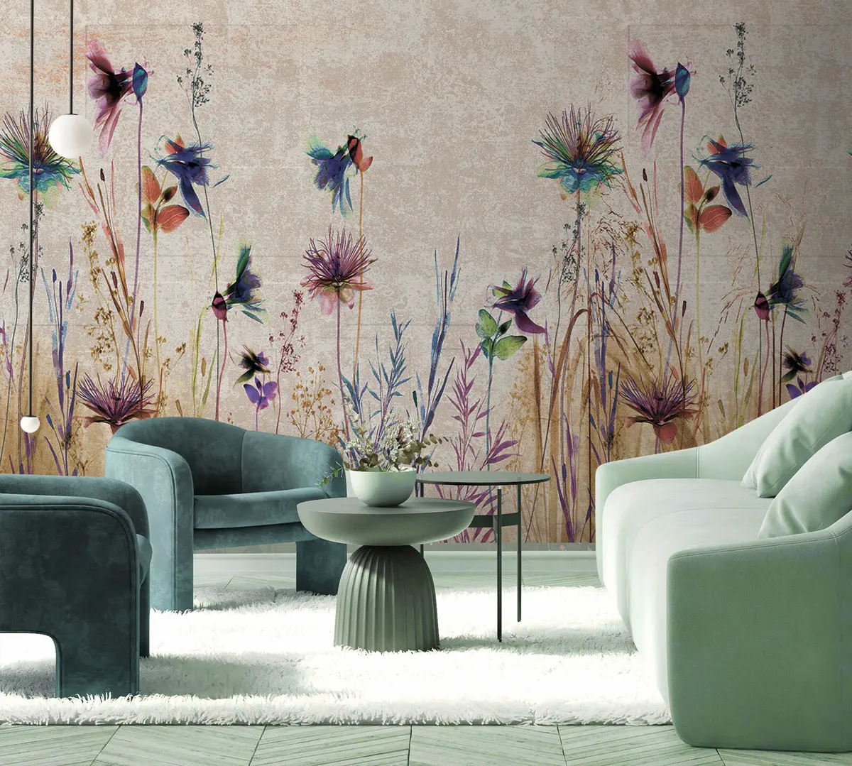 Papier peint Fleurs hautes inhabituelles sur fond beige N° u93672