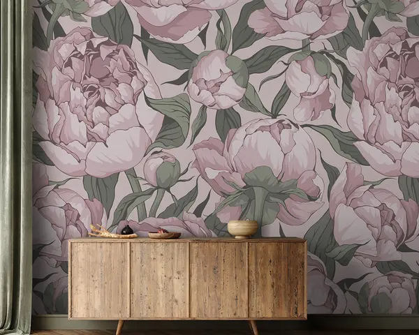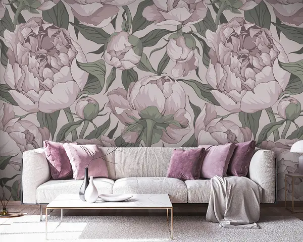Papier peint Pivoines en fleurs aux couleurs pastel N° u95849