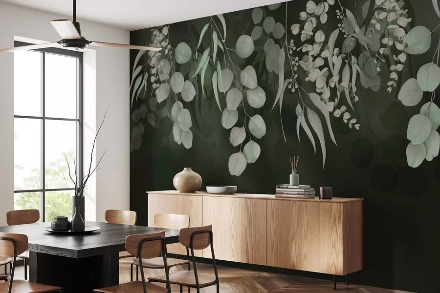 Papiers peints Feuilles et branches légères suspendues dans des tons beiges