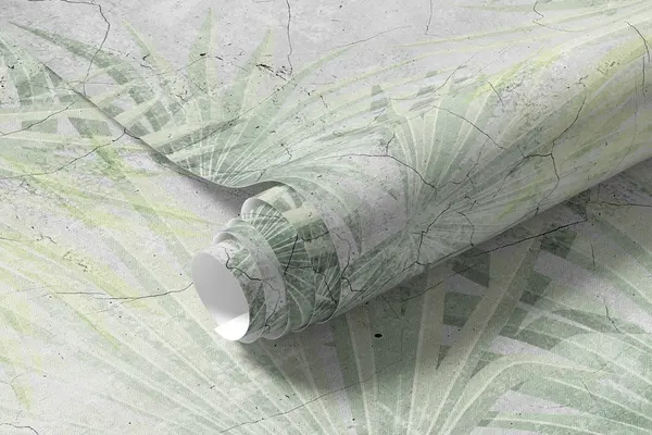 Papier peint Feuilles de palmier vert avec texture grunge N° u94284