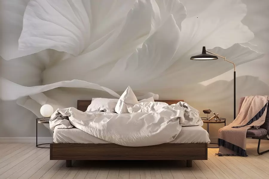 Papiers peints Impression abstraite minimaliste d'une délicate fleur blanche aux pétales doux et veloutés