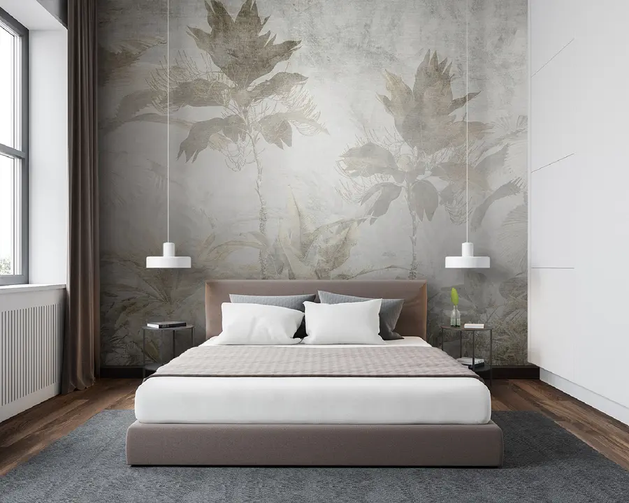 Papiers peints Feuilles de palmier de décoration moderne sur fond en béton