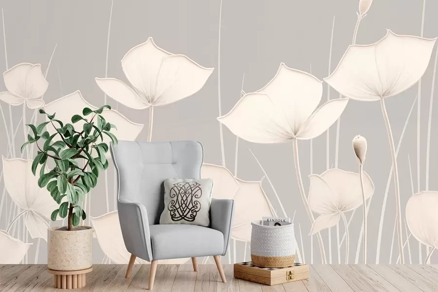 Papiers peints Image minimaliste de fleurs aux tiges fines