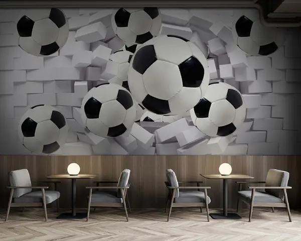 Papier peint Ballons de football sur le fond d'un mur de briques N° u94958