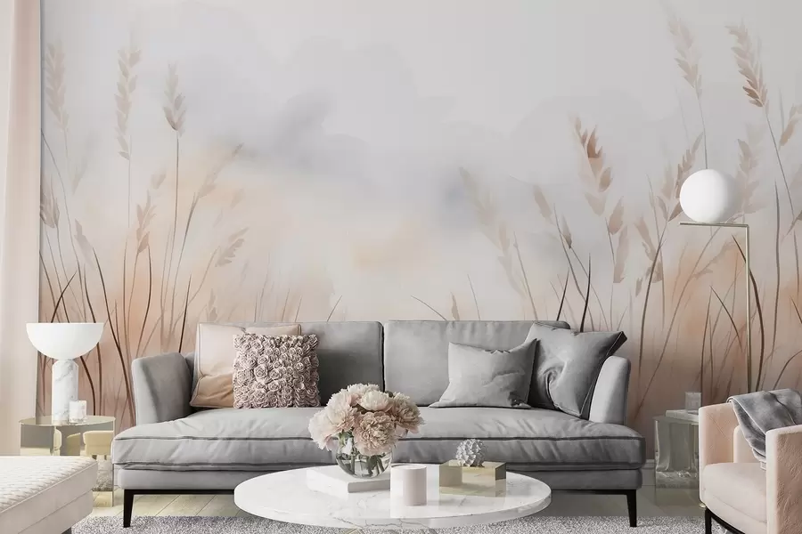 Papiers peints Oreilles de céréales en brume dans des tons doux de beige et de marron