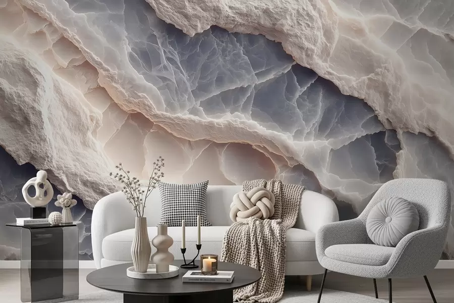 Papiers peints Abstraction élégante dans le style des couches de marbre et des minéraux dans des tons bleu-beige