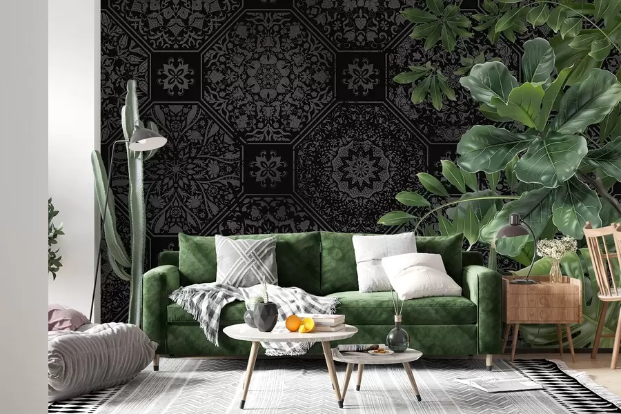 Papiers peints Ornements en géométrie stylisée de couleur verte