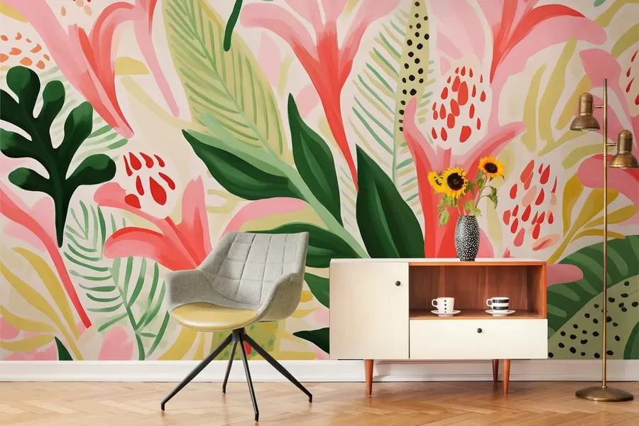 Papiers peints Feuillage tropical délicat aux couleurs pastel