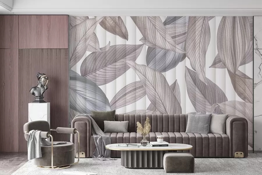 Papiers peints Feuilles superposées sur un fond clair, créant un motif abstrait et texturé