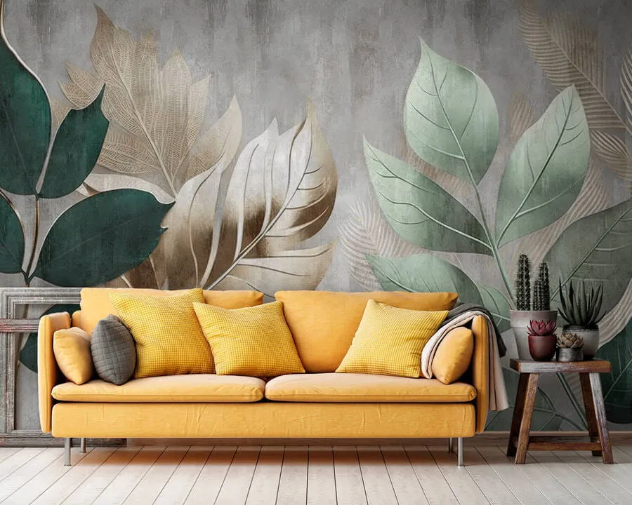 Papiers peints Feuilles sur fond texturé