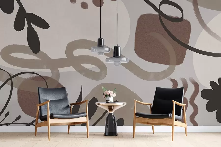 Papiers peints Imprimé moderne minimaliste texturé abstrait avec des formes dans des tons terreux de marron, beige et noir