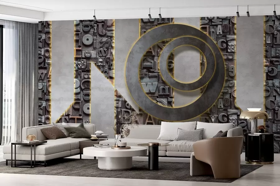 Papiers peints Papier peint moderne de style loft avec imitation de lettres tridimensionnelles, béton et rétroéclairage