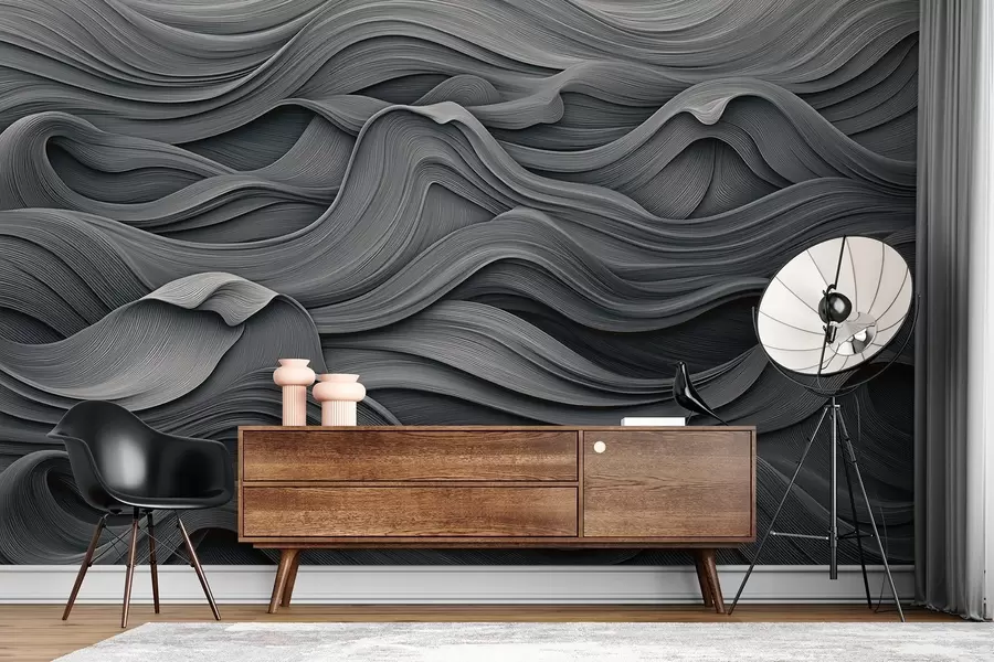 Papiers peints Formes abstraites dans des tons de blanc, de gris et de noir sur un fond texturé flou