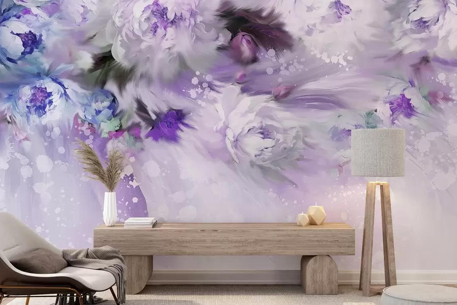 Papiers peints Acrylique pivoines, coups de pinceau, floral, couleurs pastel violettes douces