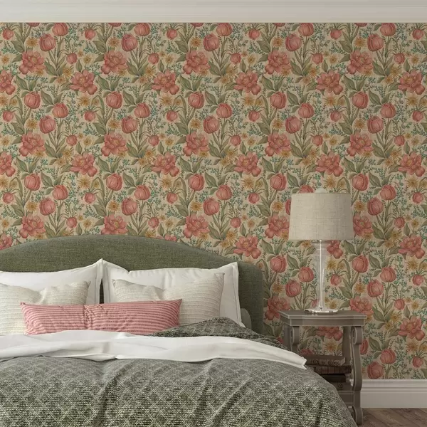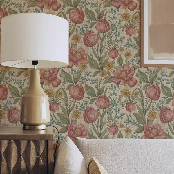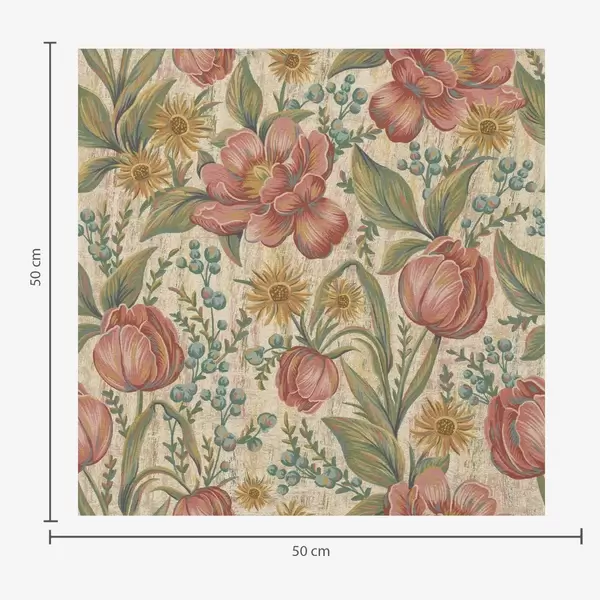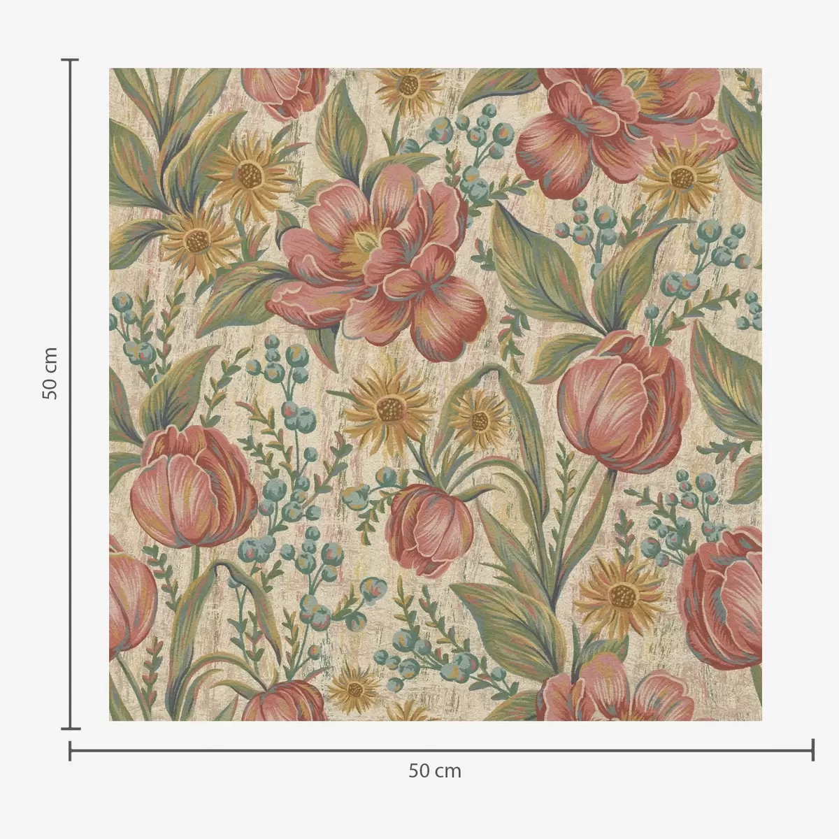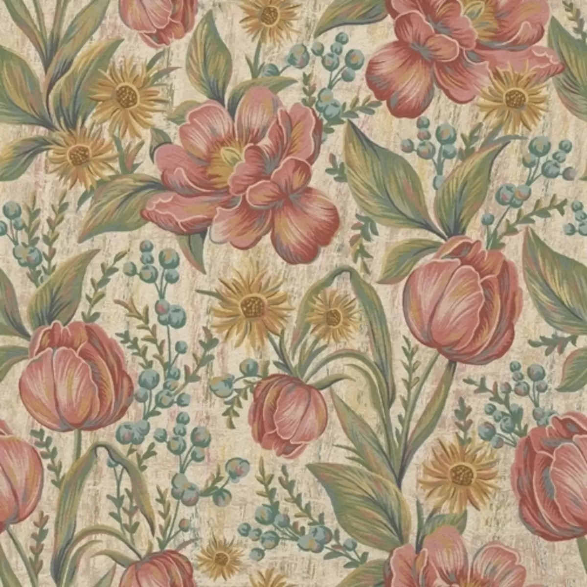 Papier peint Tulipes et asters vintage, fond crème texturé N° a00773