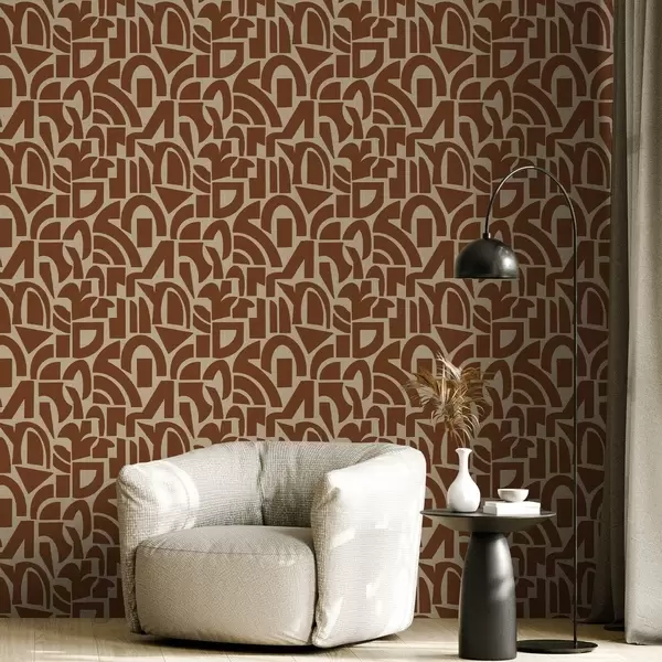 Papier peint Formes géométriques en terre cuite sur lin N° a00774