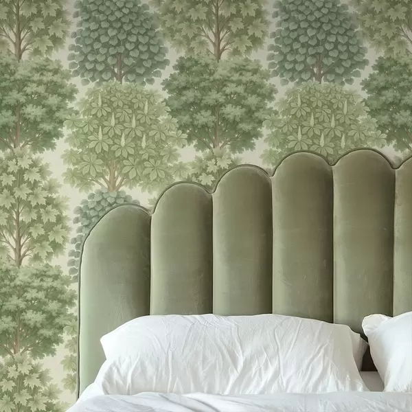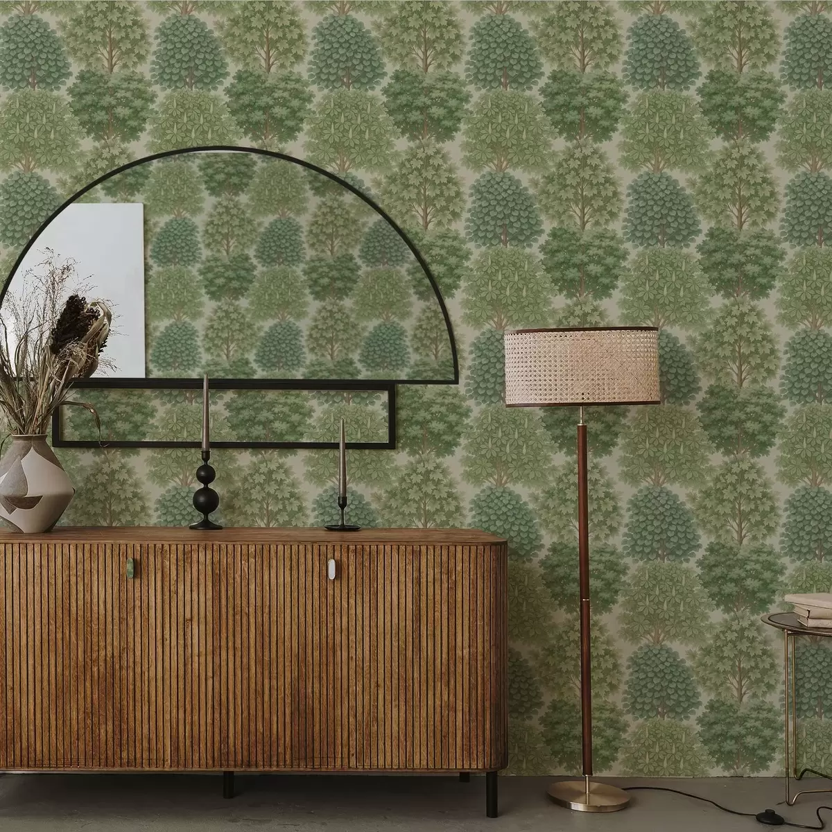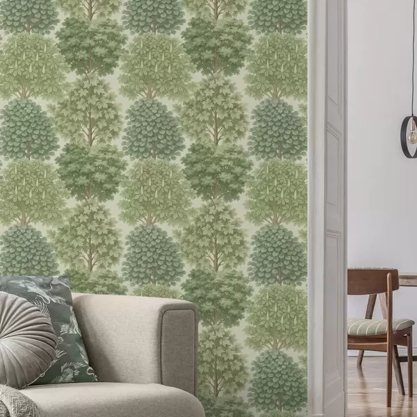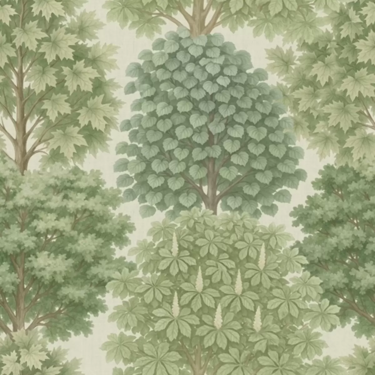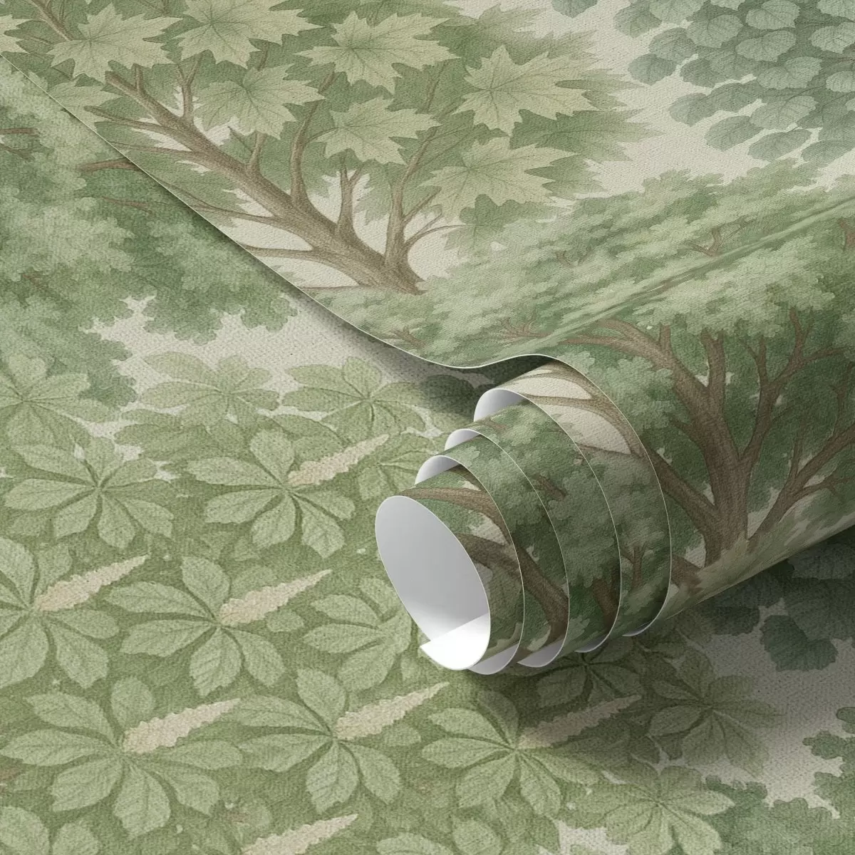 Papier peint Jardin arboré dans des tons verts doux sur un fond clair N° a00775