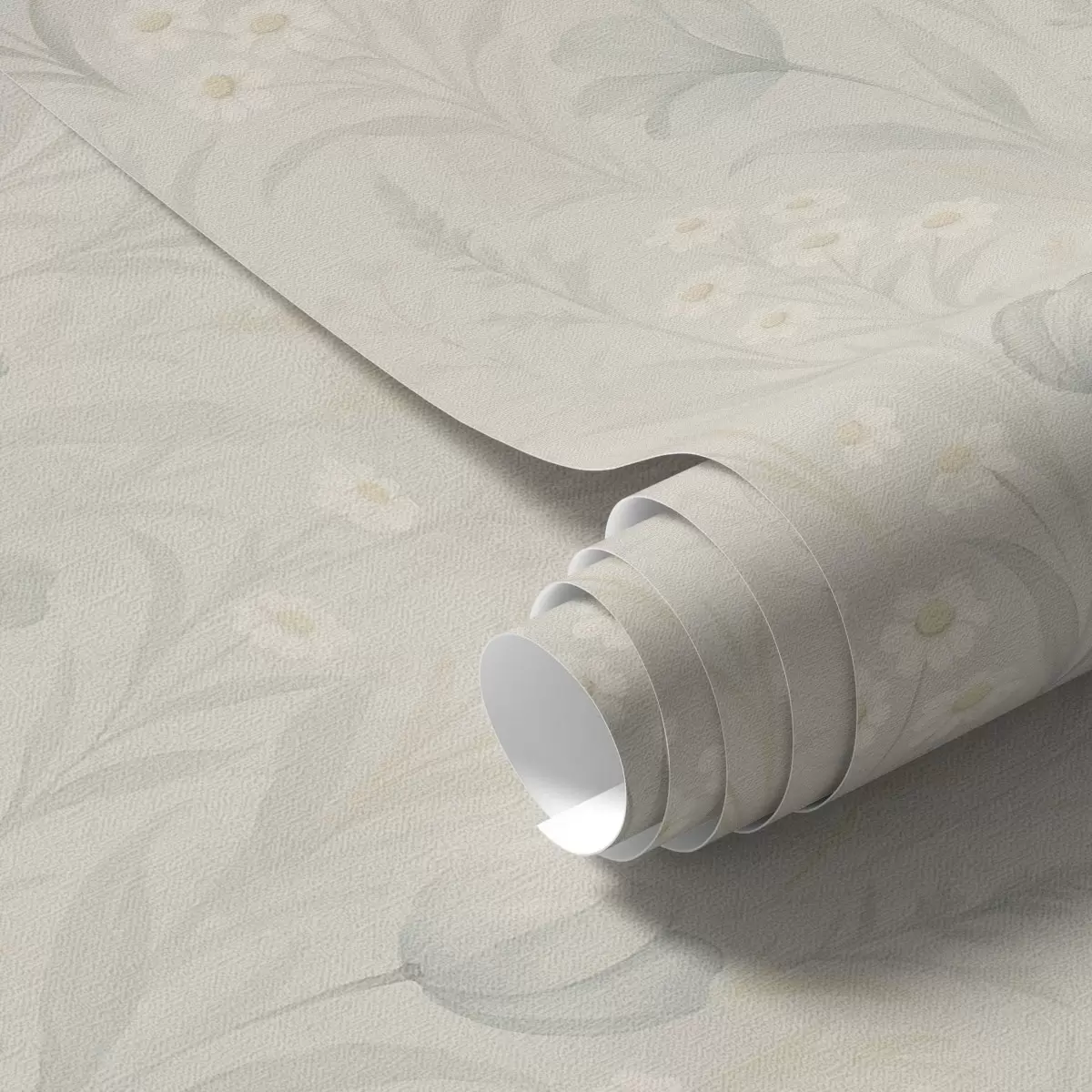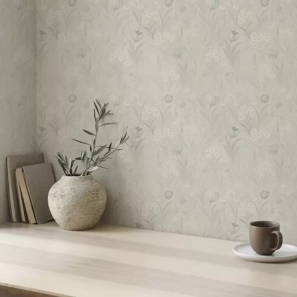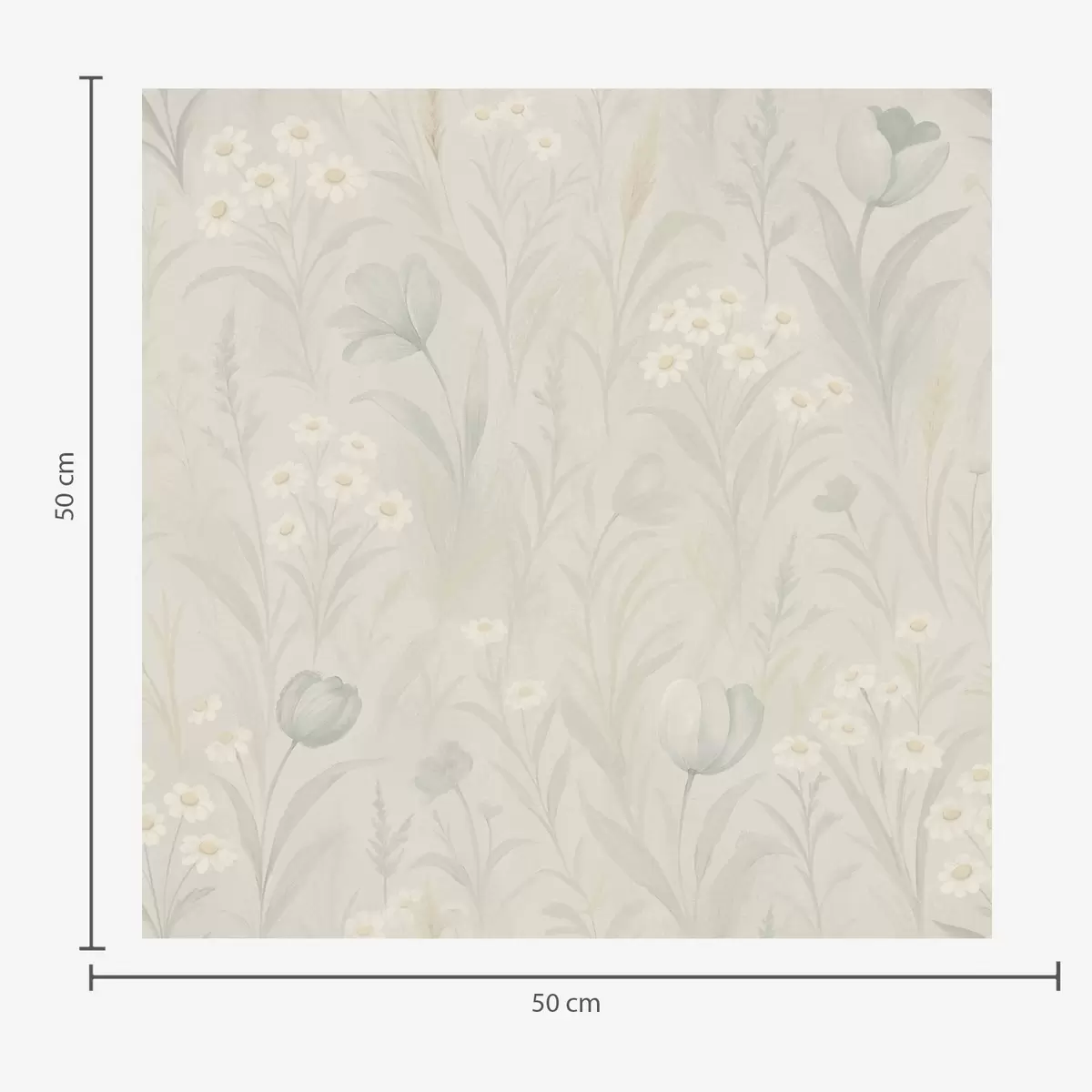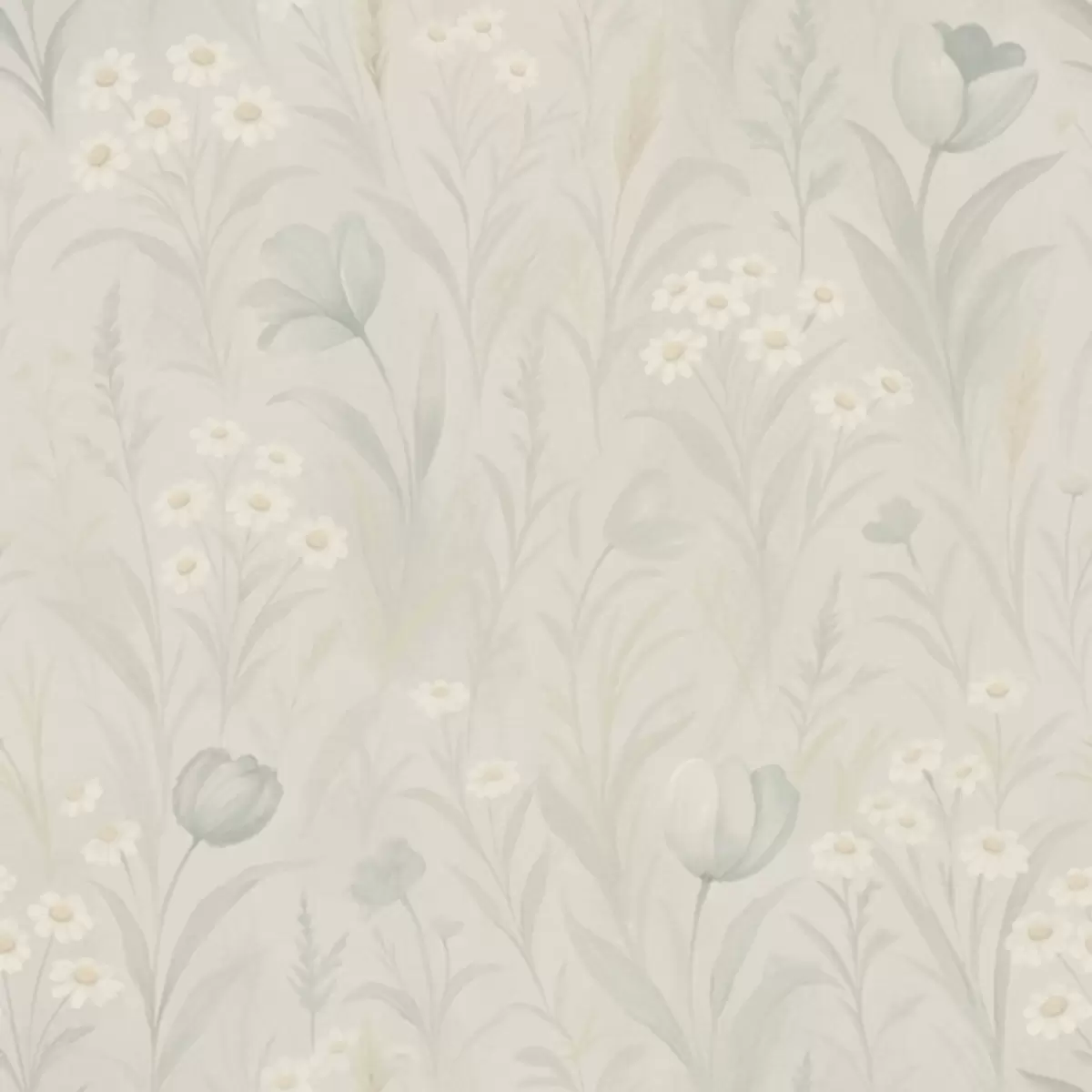 Papier peint Prairie paisible avec tulipes et marguerites, sauge pastel N° a00779