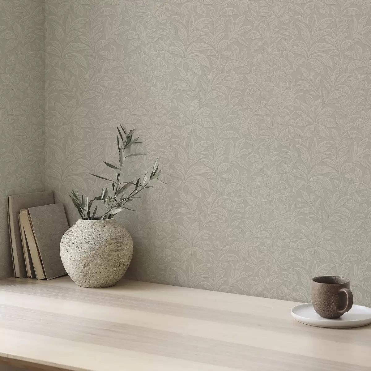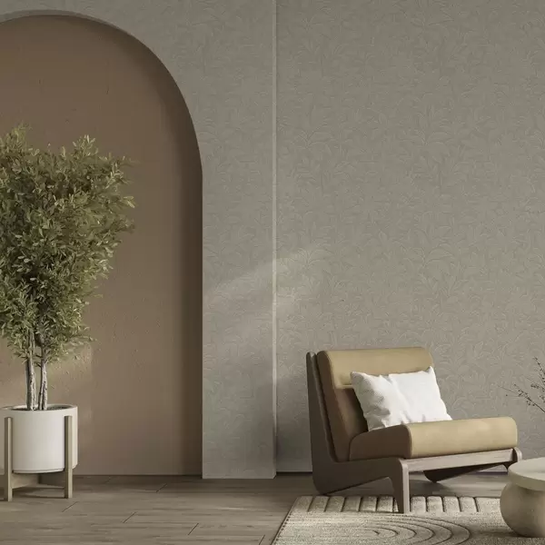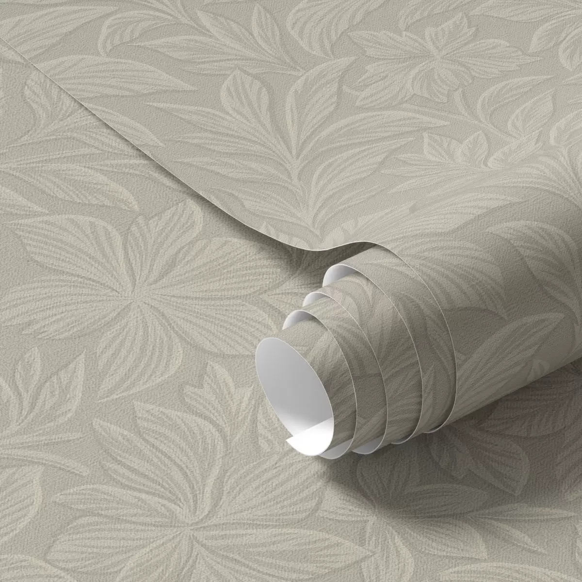 Papier peint Silhouettes de feuilles en relief, taupe chaud N° a00781