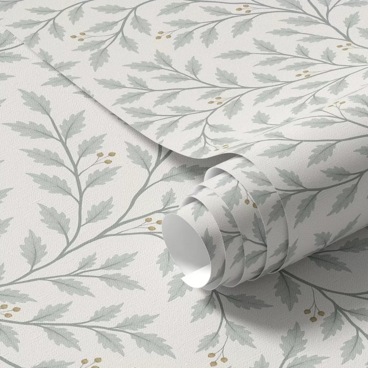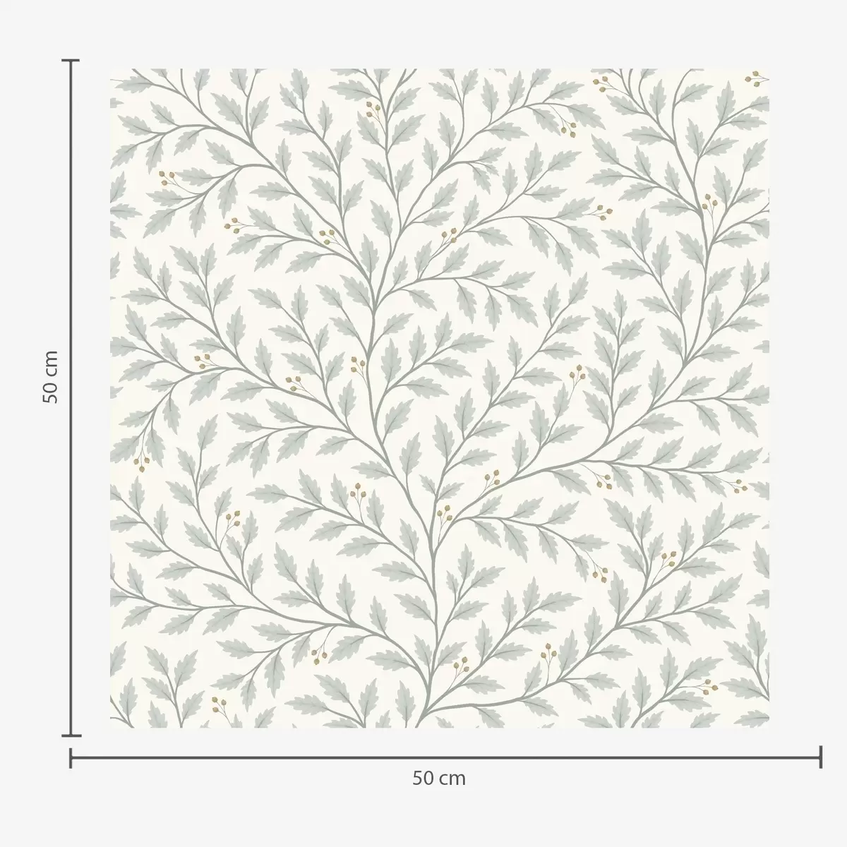 Papiers peints Branches avec feuilles et baies, crème claire et sauge Nr. a00783