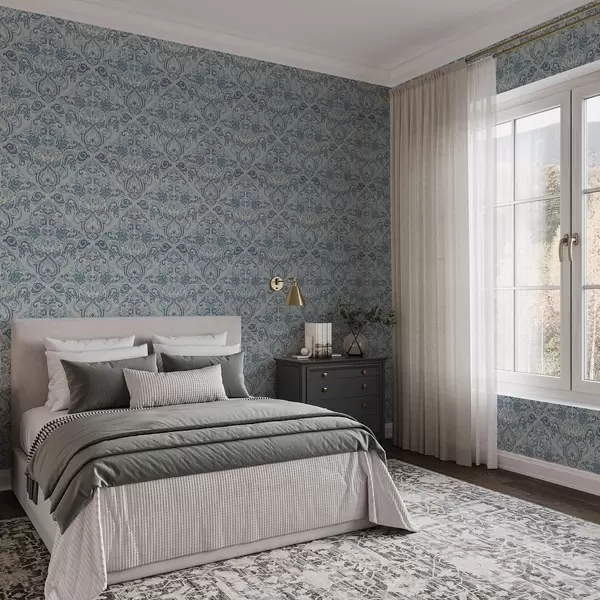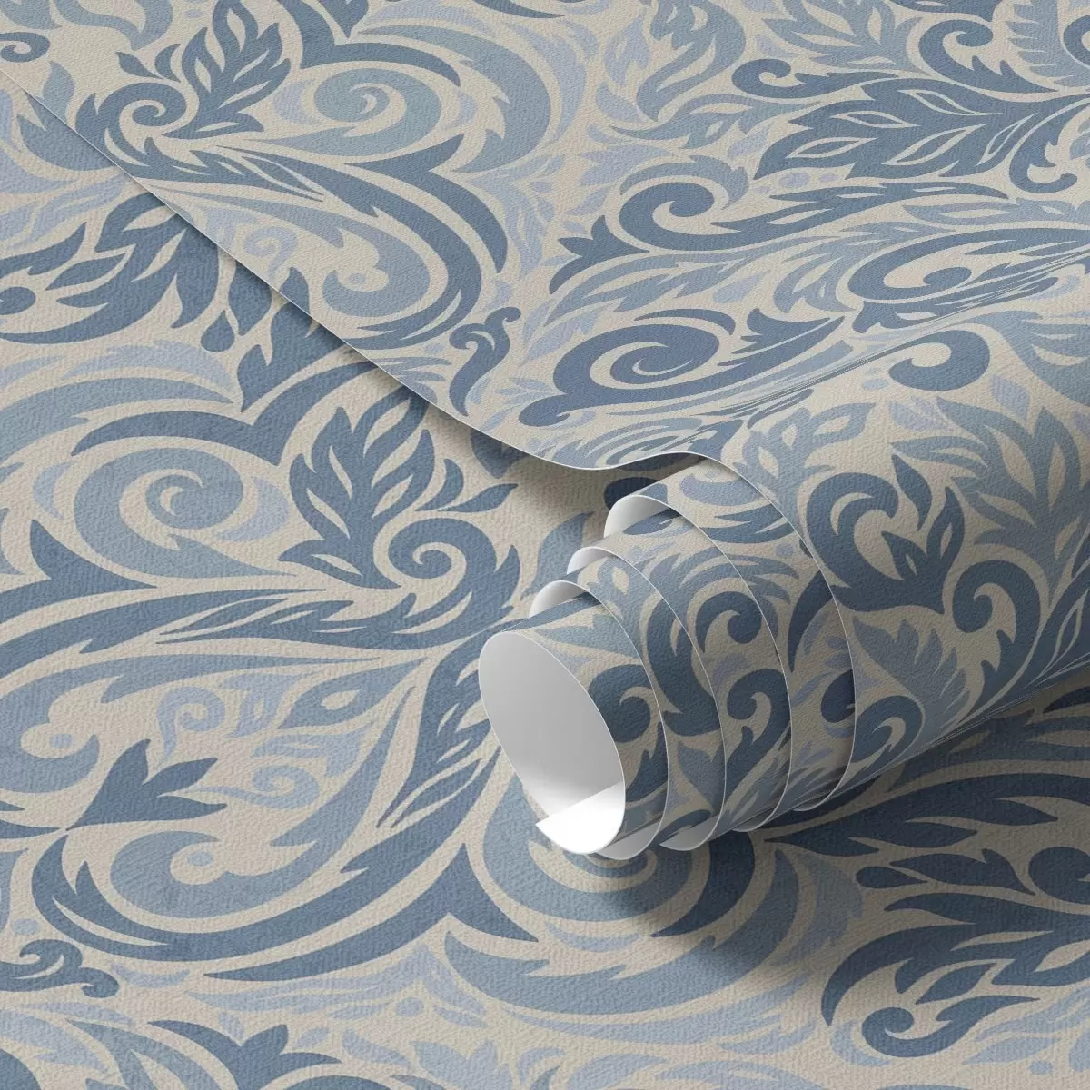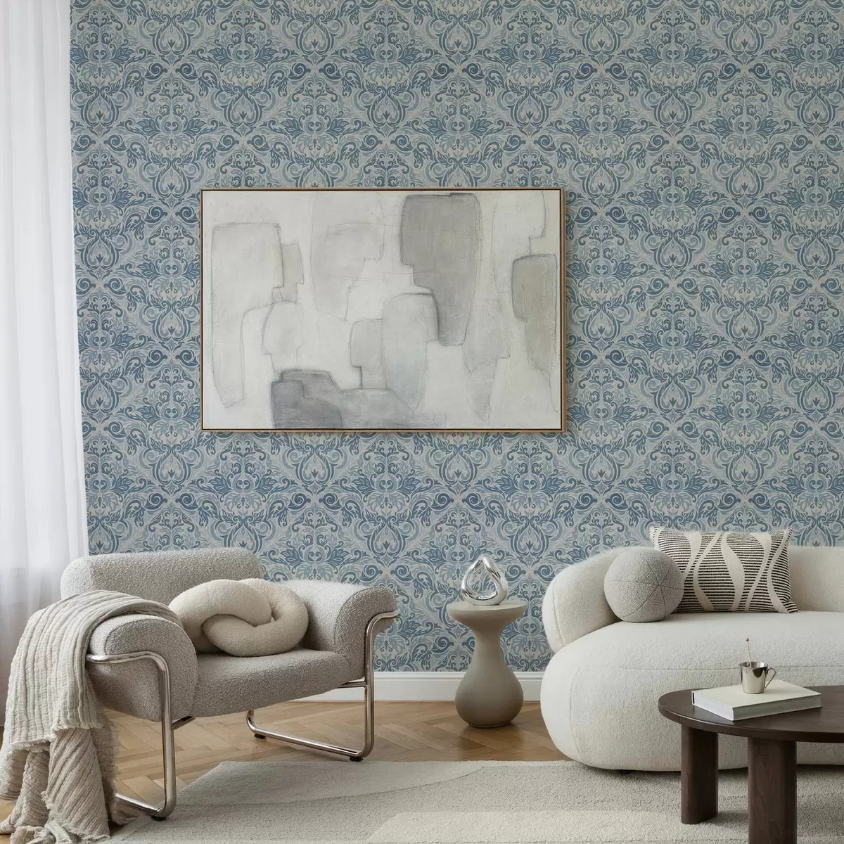 Papiers peints Damassé classique, motifs bleus sur fond crème Nr. a00826v1